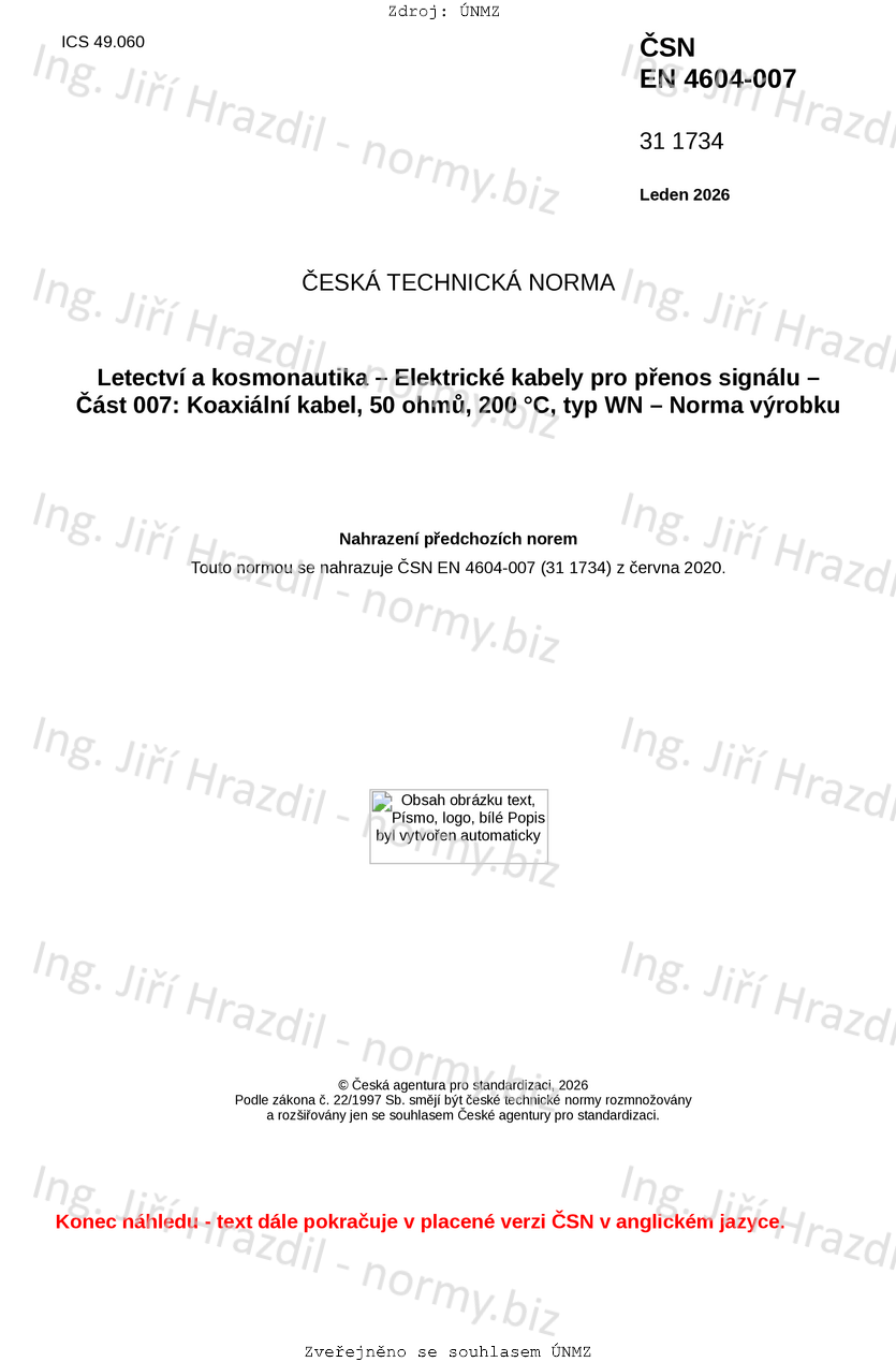 | Tato norma nahradila | ČSN EN 4604-007 (311734) z června 2020 |