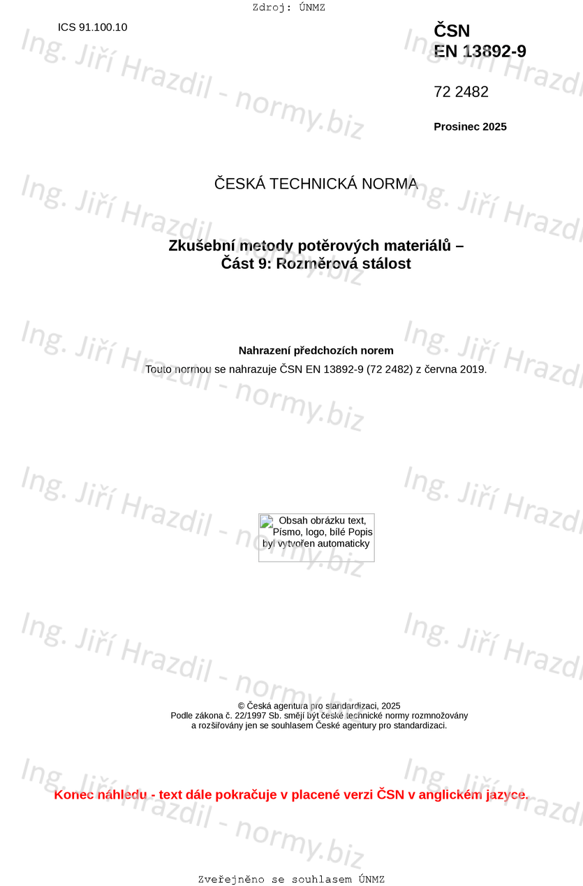 | Tato norma nahradila | ČSN EN 13892-9 (722482) z června 2019 |