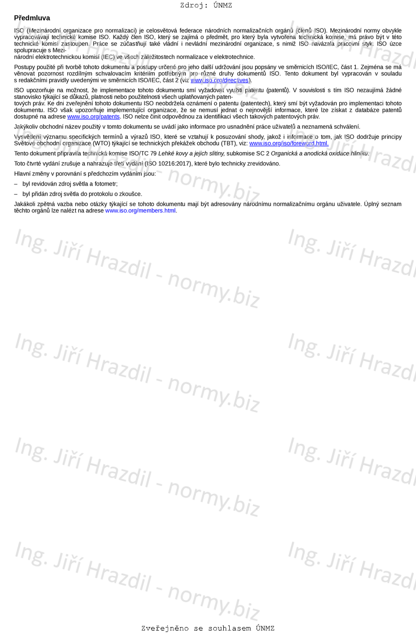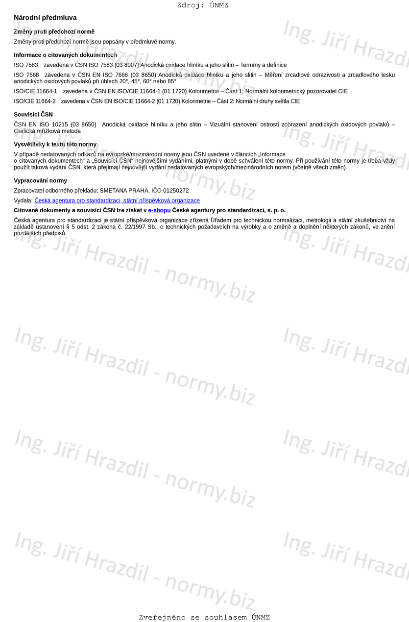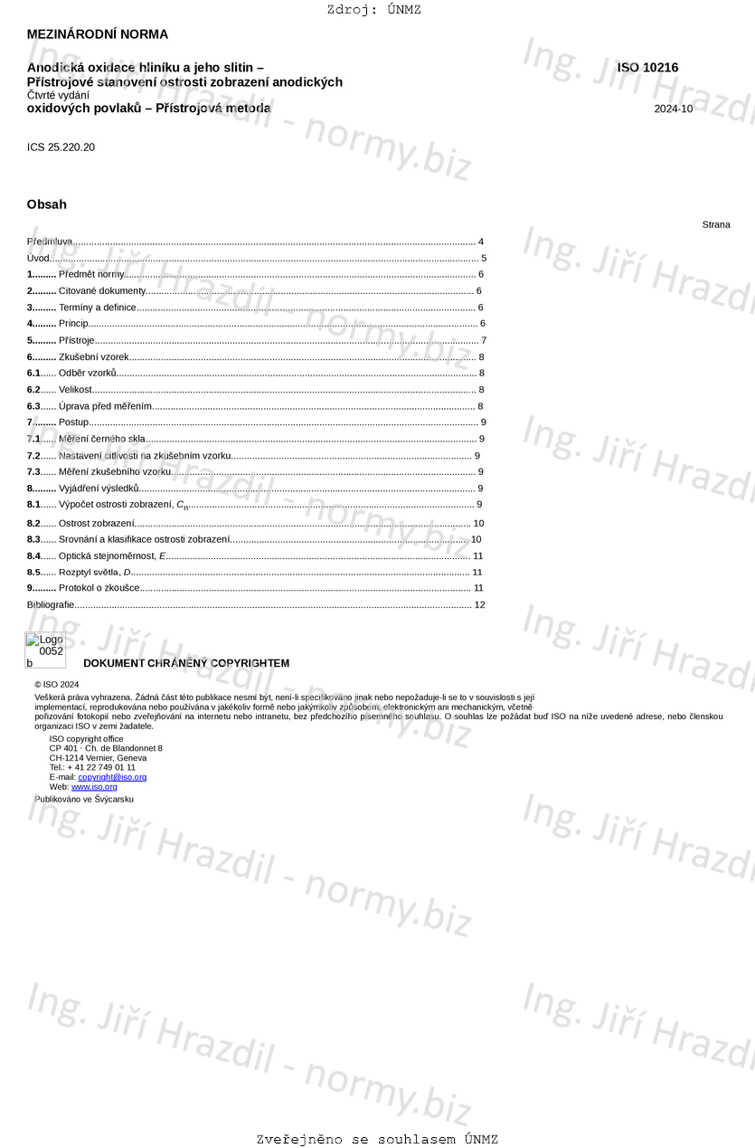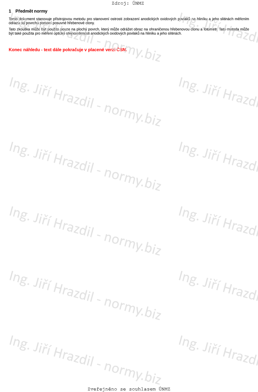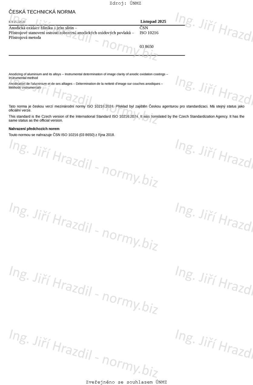 Tento dokument stanovuje přístrojovou metodu pro stanovení ostrosti zobrazení anodických oxidových povlaků na hliníku a jeho slitinách měřením odrazu od povrchu pomocí posuvné hřebenové clony.