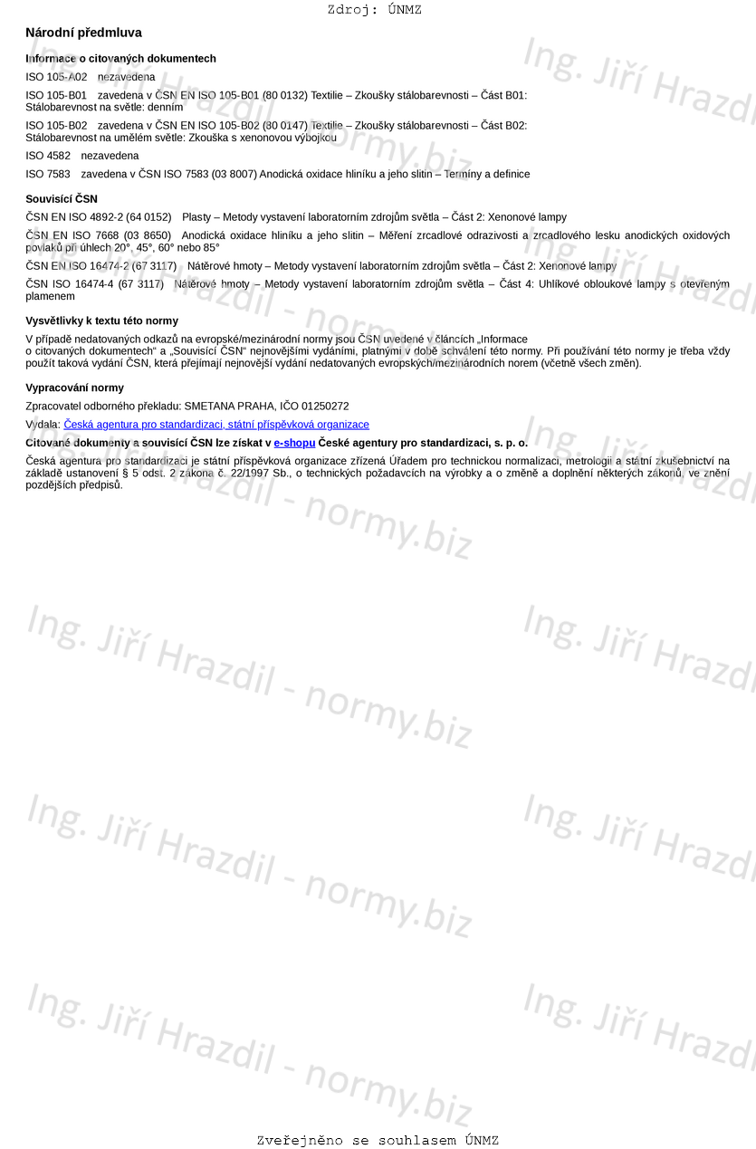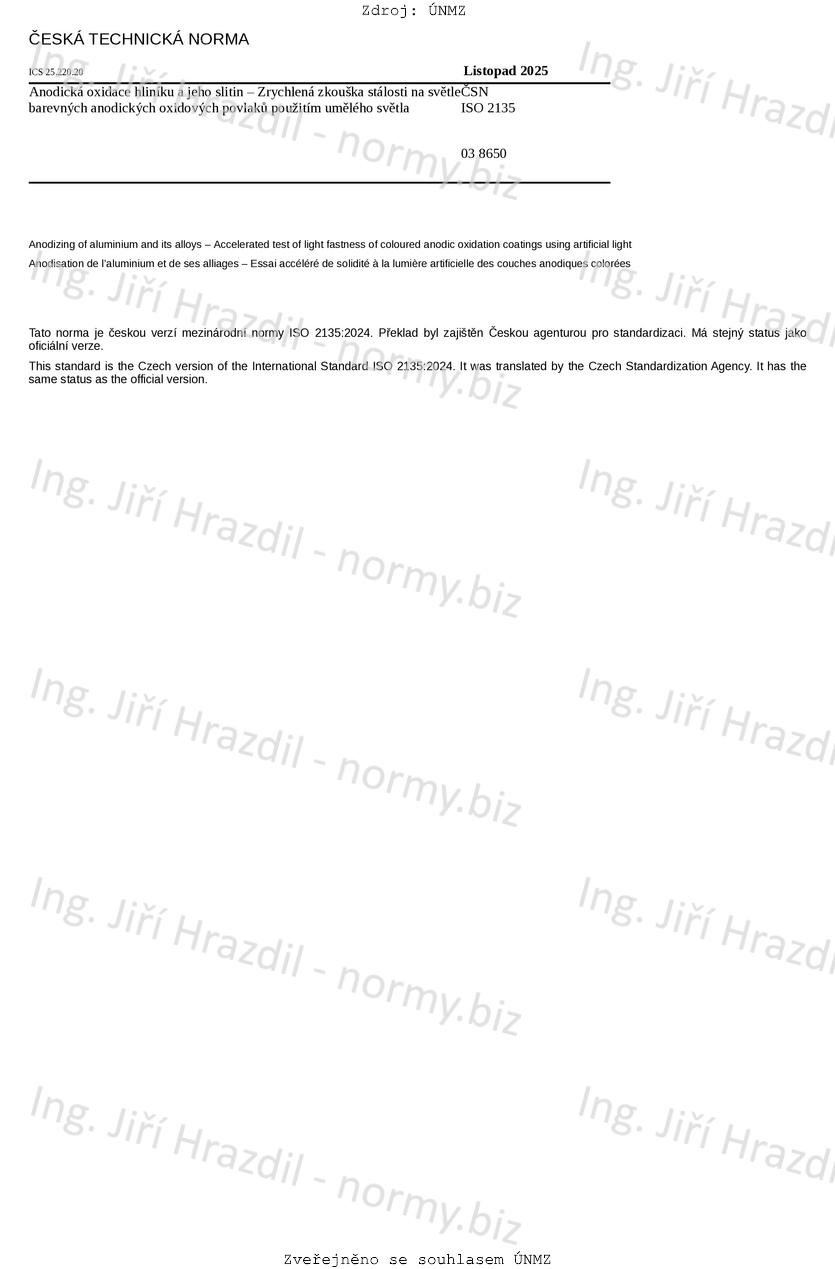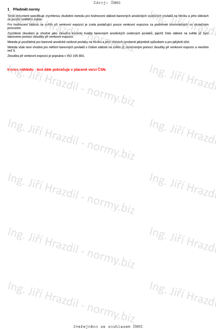 Tento dokument specifikuje zrychlenou zkušební metodu pro hodnocení stálosti barevných anodických oxidových povlaků na hliníku a jeho slitinách za použití umělého světla.