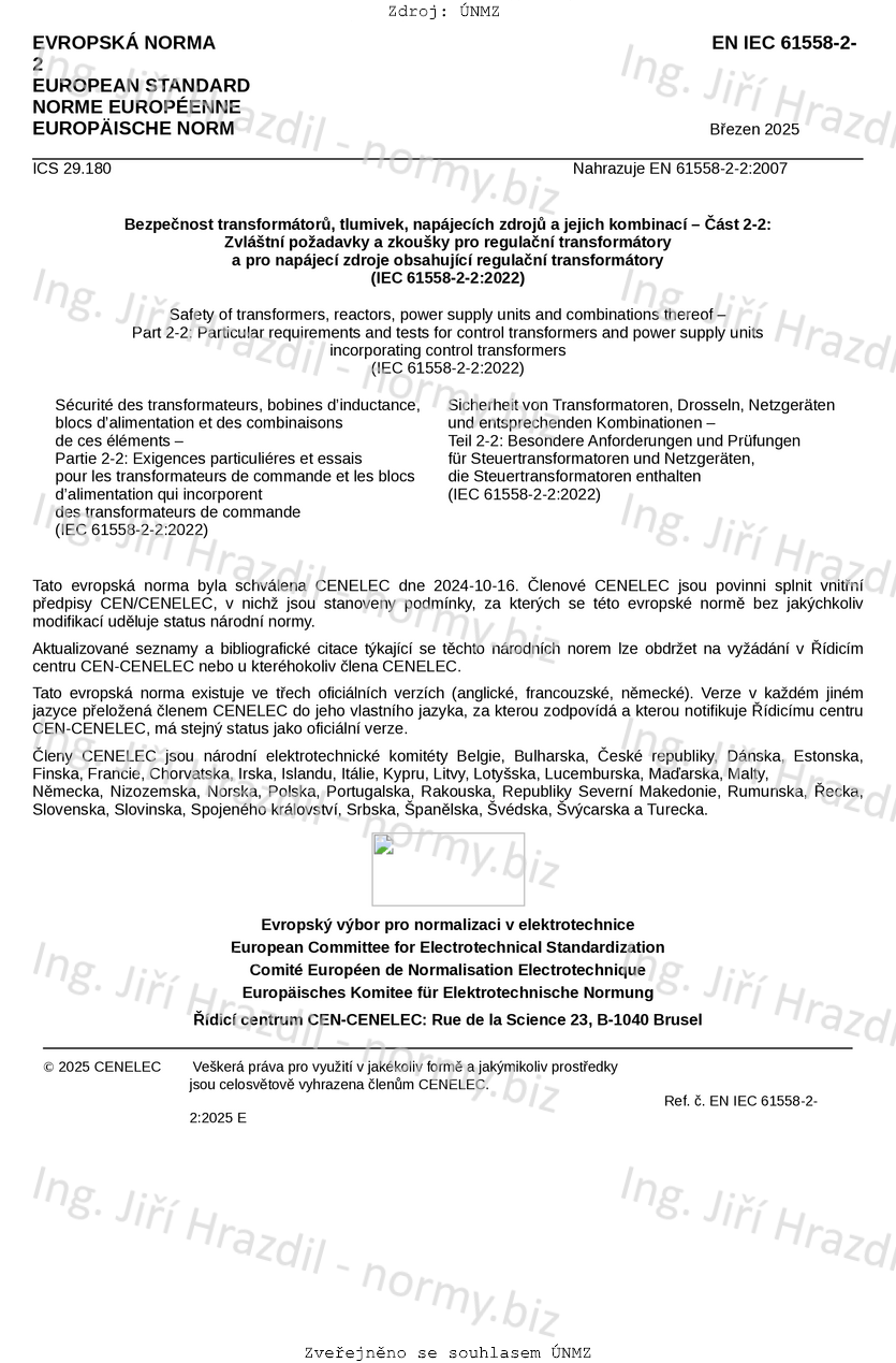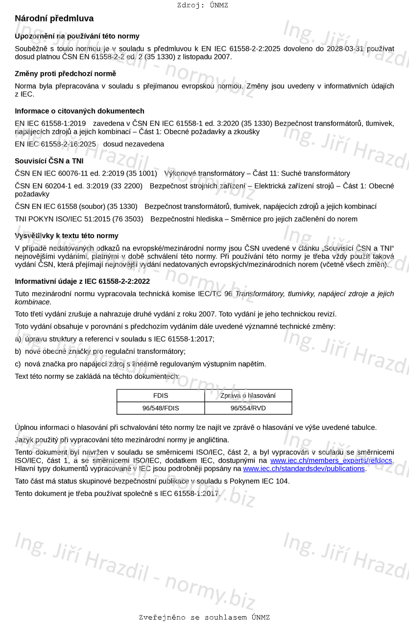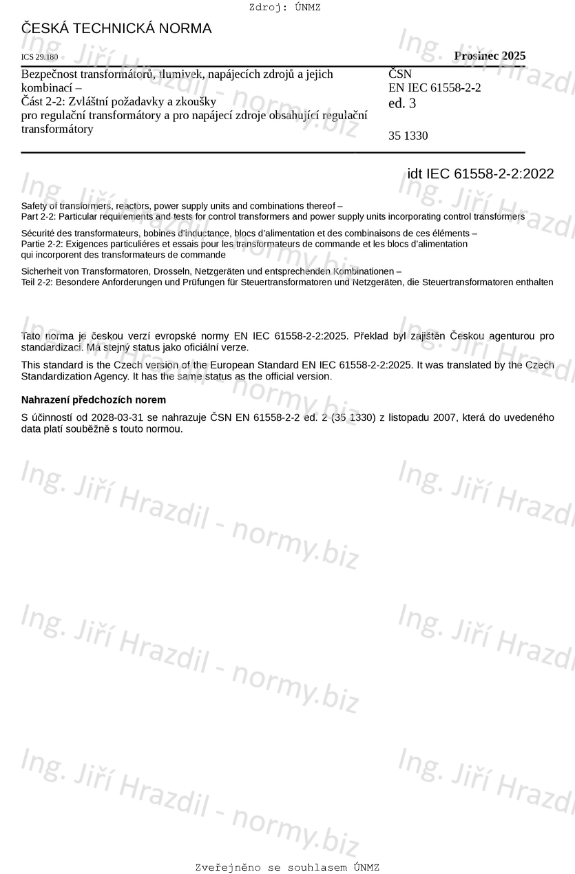 Označení ČSN EN IEC 61558-2-2 ed. 3 (351330)