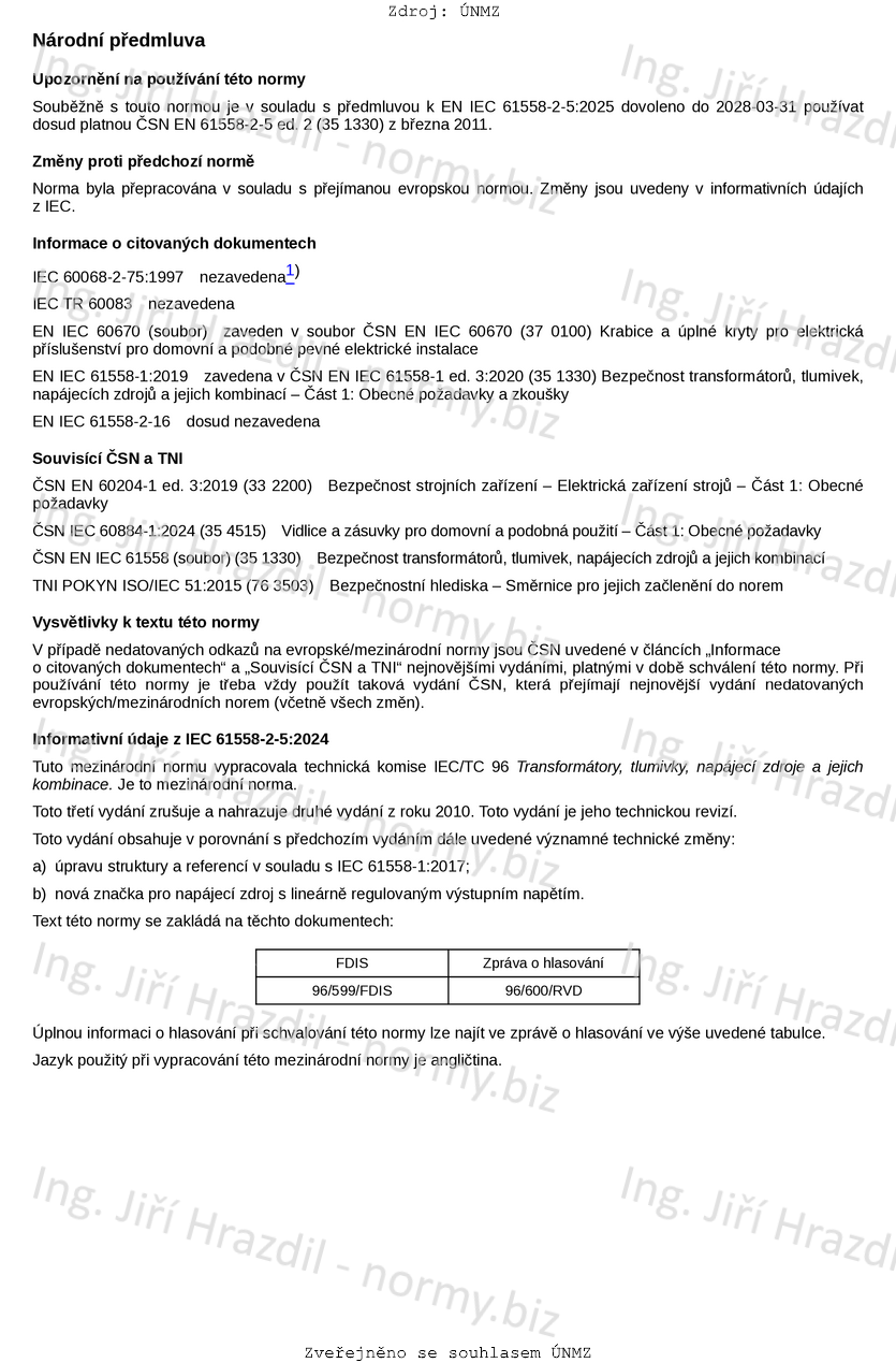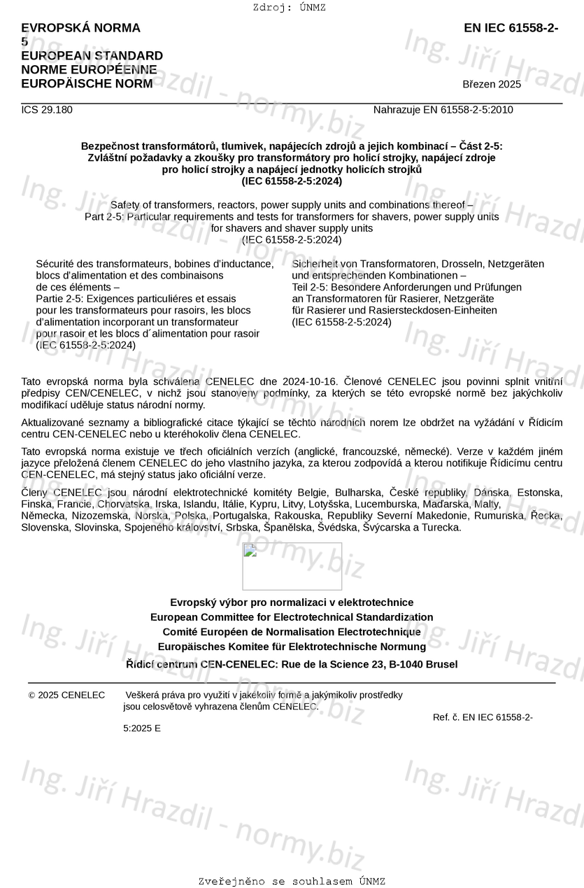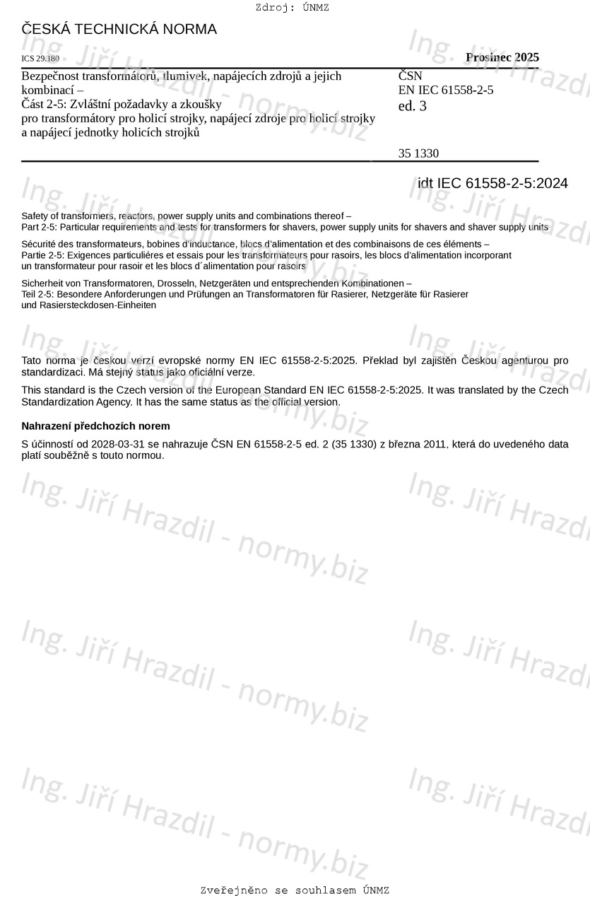 | Označení | ČSN EN IEC 61558-2-5 ed. 3 (351330) |