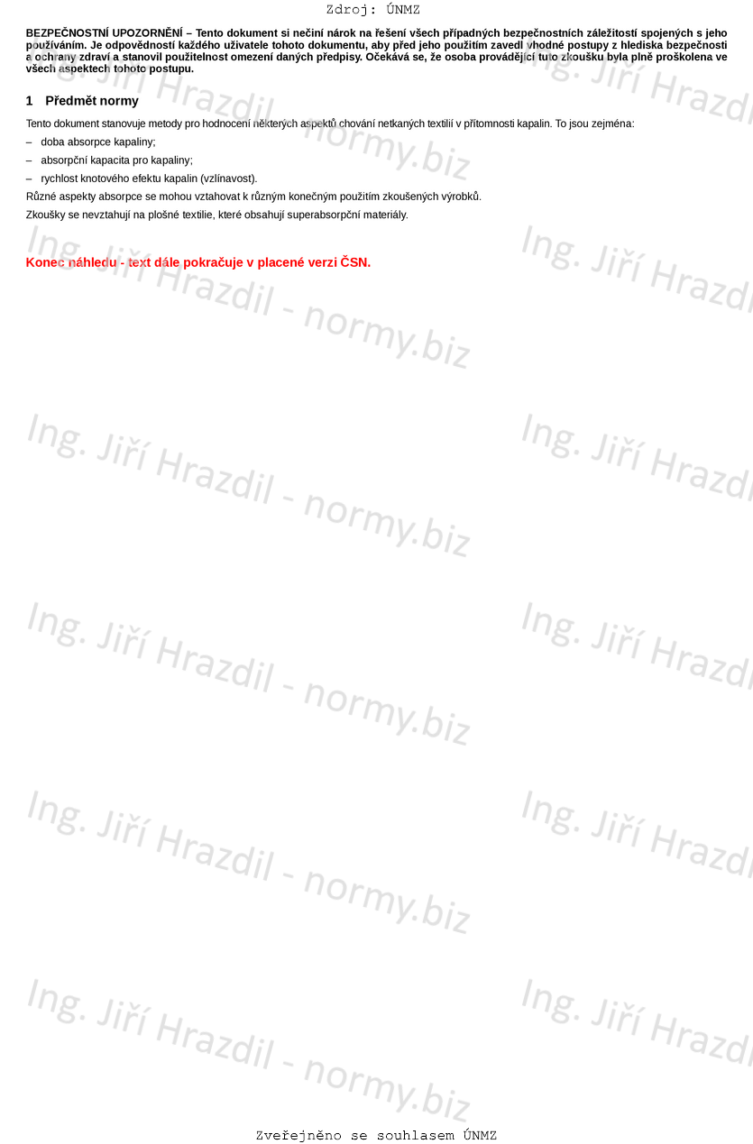 Tento dokument stanovuje metody pro hodnocení některých aspektů chování netkaných textilií v přítomnosti kapalin.