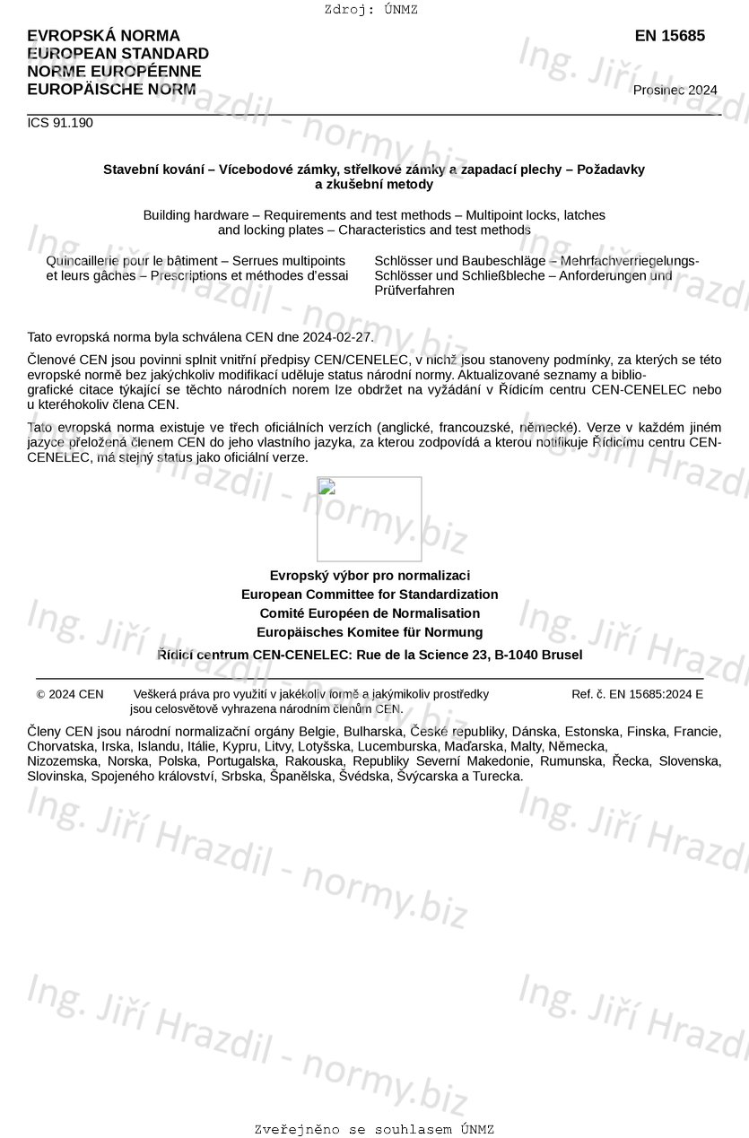 Tento dokument nespecifikuje mechanicky ovládané zámky a jejich zapadací plechy, které jsou specifikovány v EN 12209.