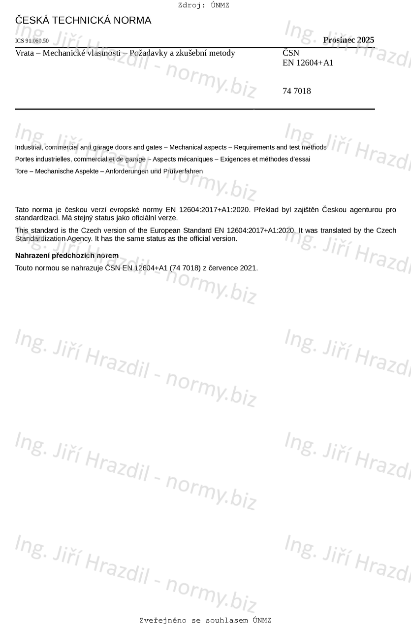 | Tato norma nahradila | ČSN EN 12604 +A1 (747018) z července 2021 |