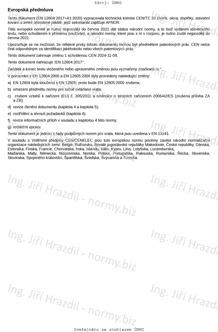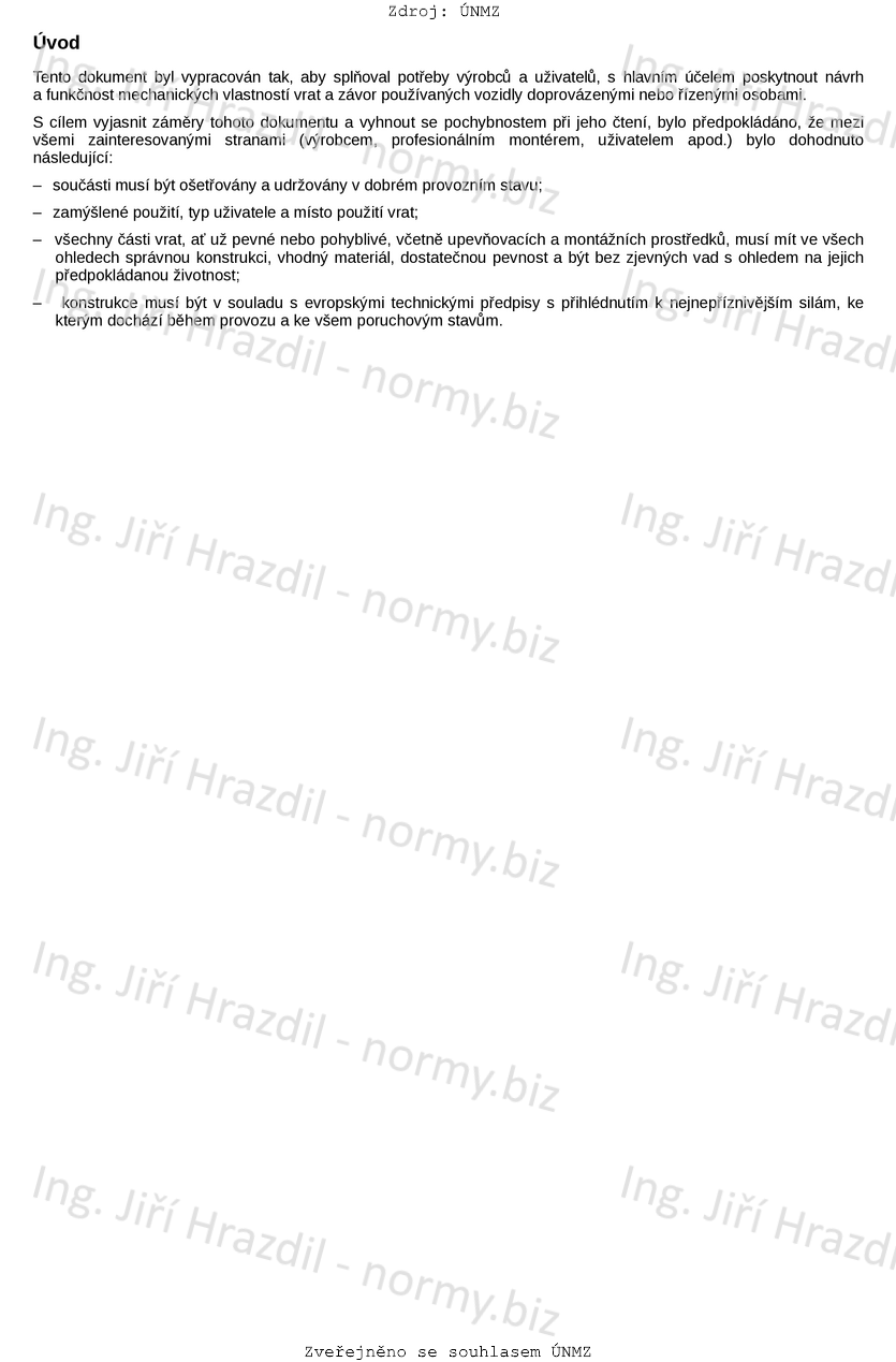 Tento dokument platí jen pro vrata, která nejsou součástí nosné konstrukce budovy.