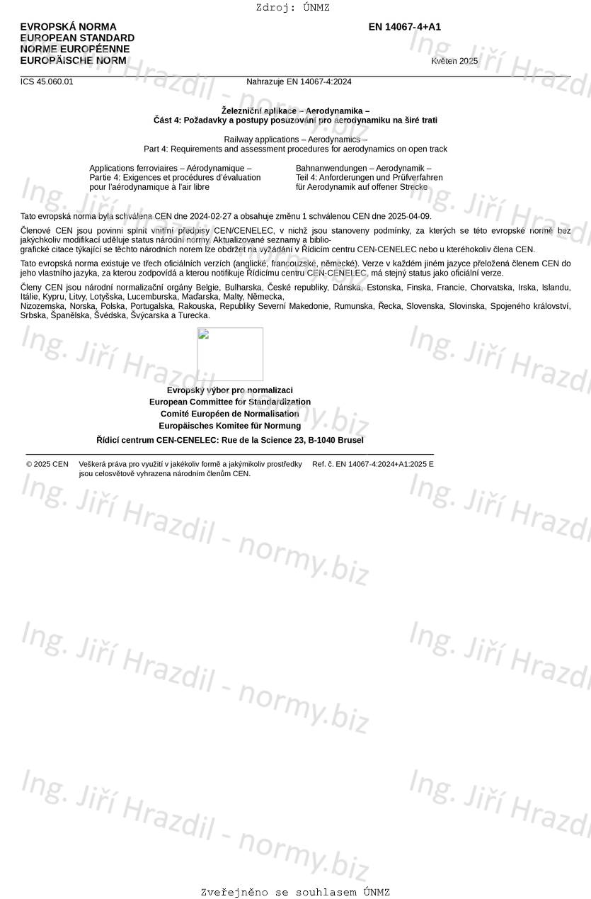 Železniční aplikace - Aerodynamika - Část 4: Požadavky a postupy posuzování pro aerodynamiku na širé trati