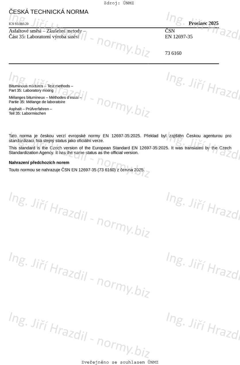 Tato norma nahradila ČSN EN 12697-35 (736160) z června 2025