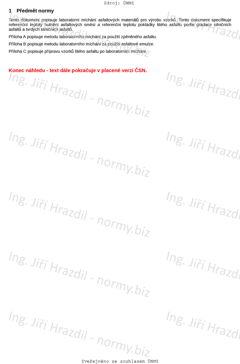 Tento dokument popisuje laboratorní míchání asfaltových materiálů pro výrobu vzorků. Tento dokument specifikuje referenční teploty hutnění asfaltových směsí a referenční teplotu pokládky litého asfaltu podle gradace silničních asfaltů a tvrdých silničních asfaltů.