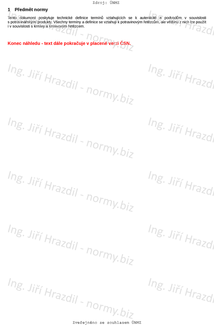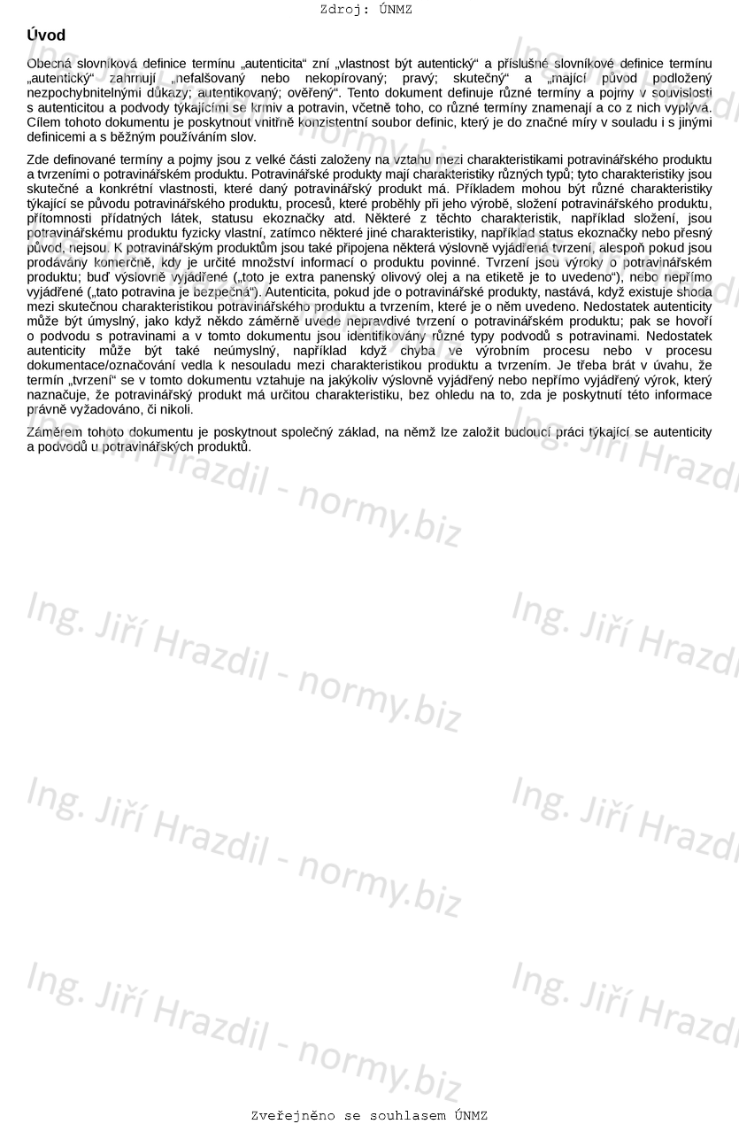 Tento dokument poskytuje technické definice termínů týkajících se autenticity a podvodů v souvislosti s potravinářskými produkty. Všechny termíny a definice se vztahují k potravinovým řetězcům, ale většinu z nich lze použít i v souvislosti s krmivy a krmivovým řetězcem.