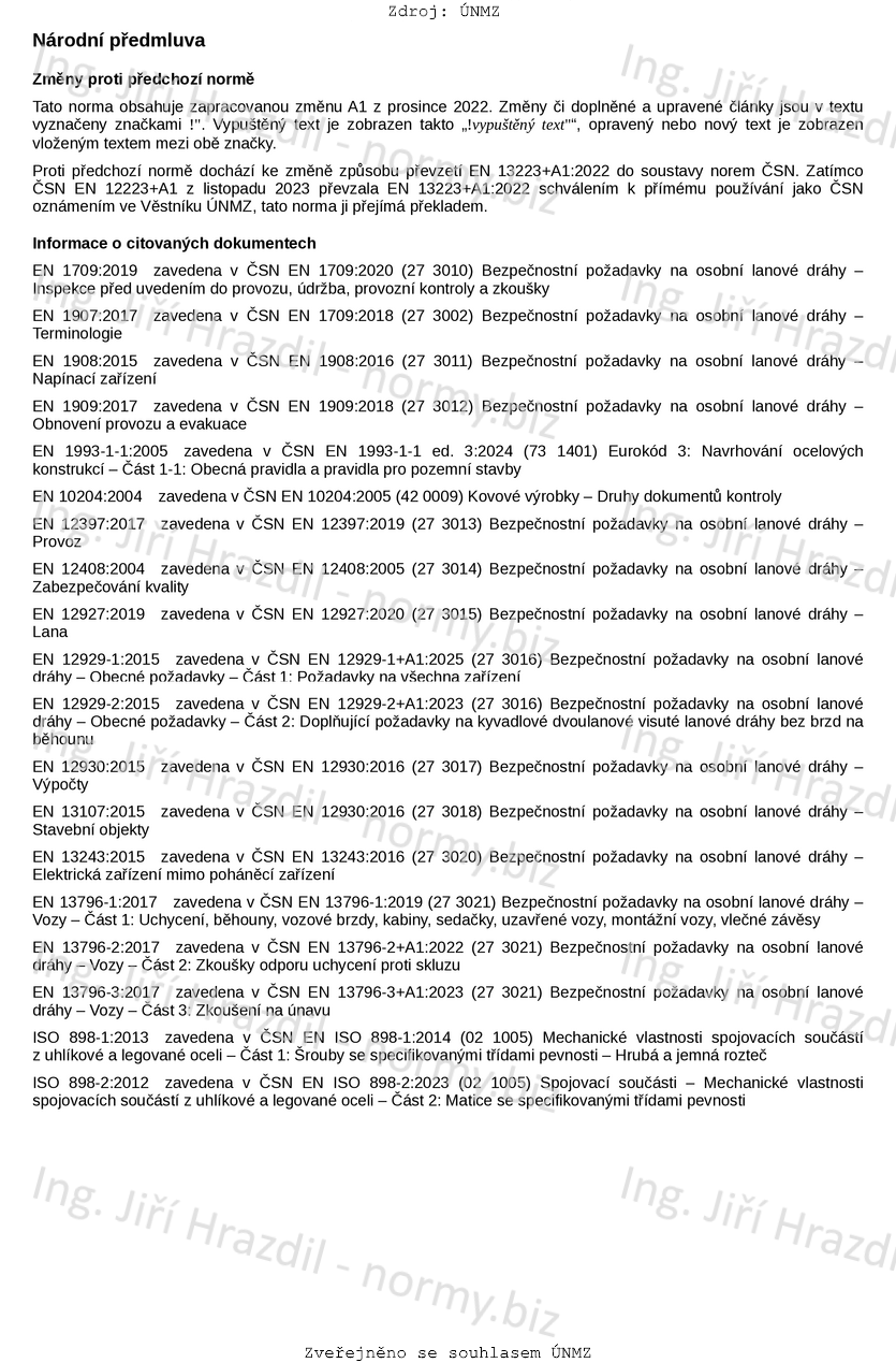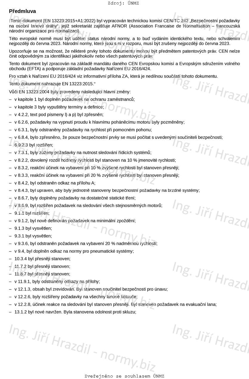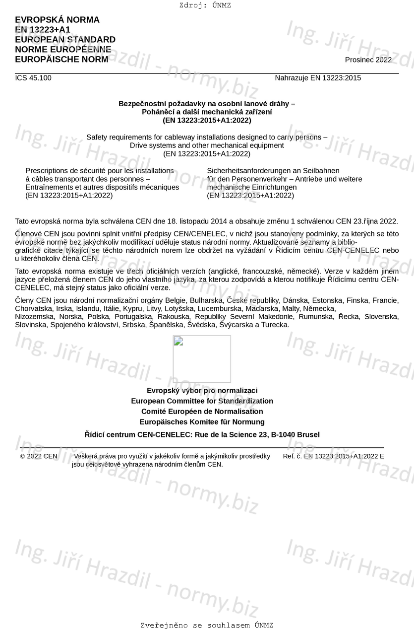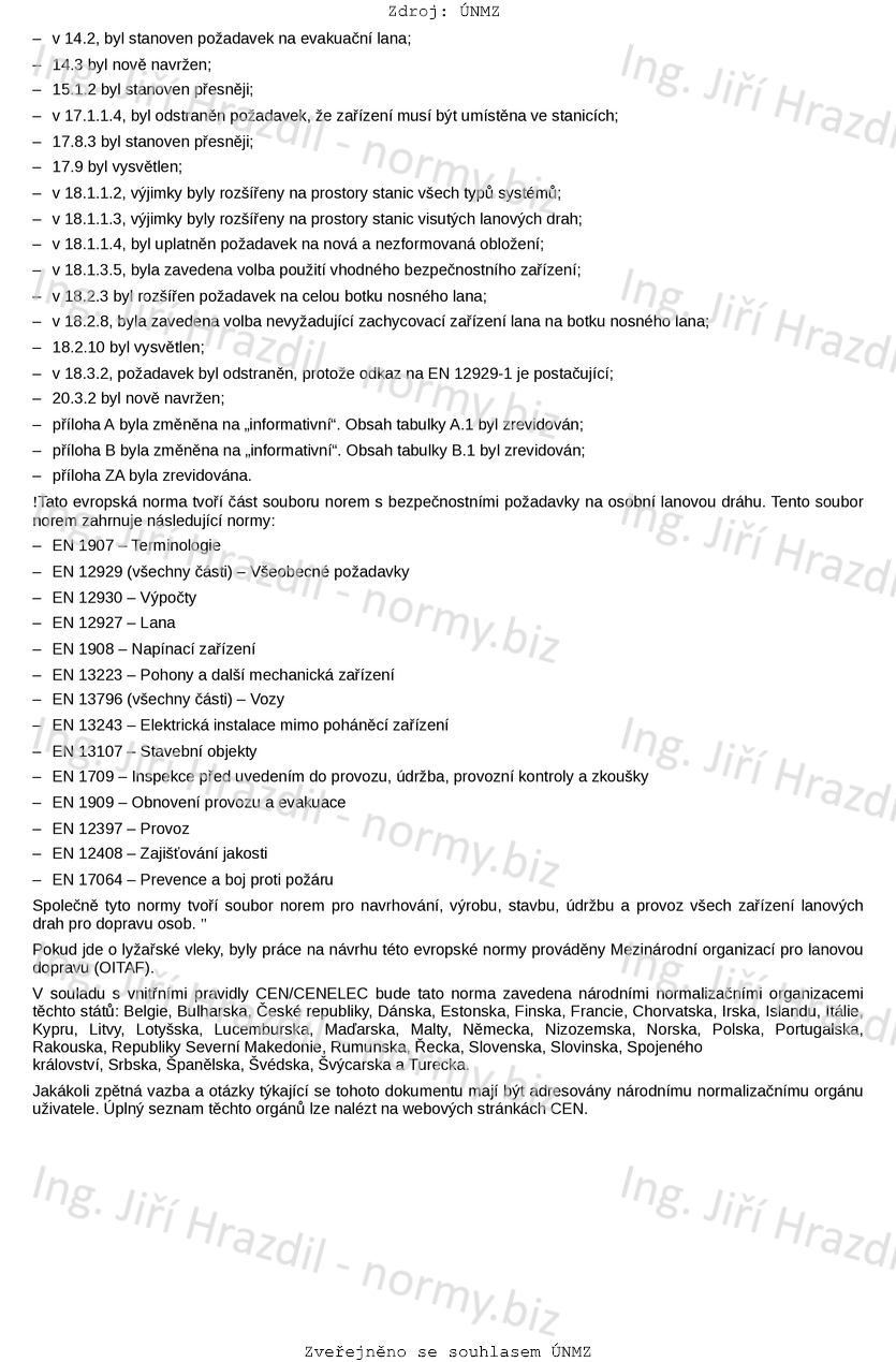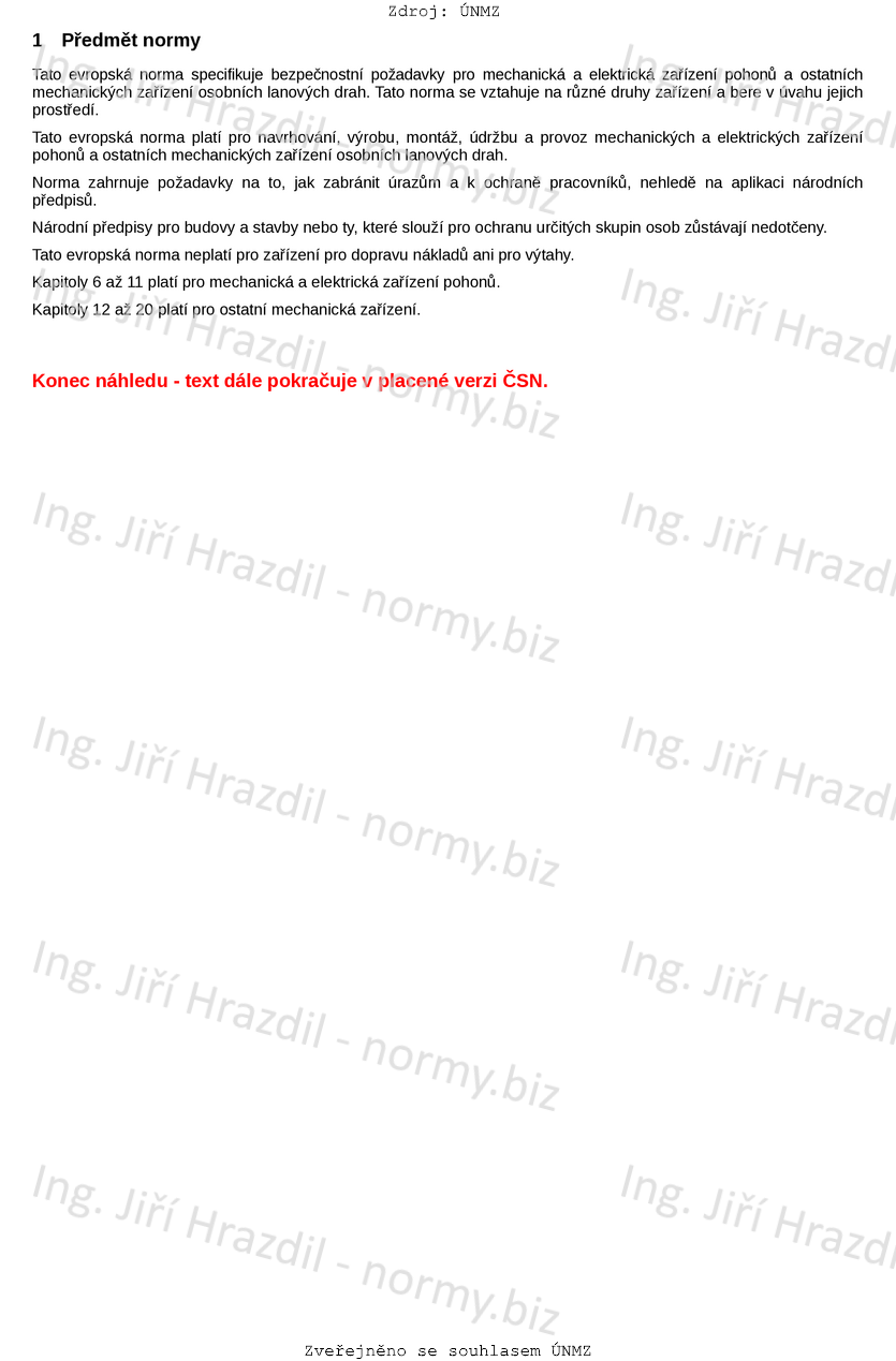 Tato evropská norma platí pro navrhování, výrobu, montáž, údržbu a provoz mechanických a elektrických zařízení pohonů a ostatních mechanických zařízení osobních lanových drah.