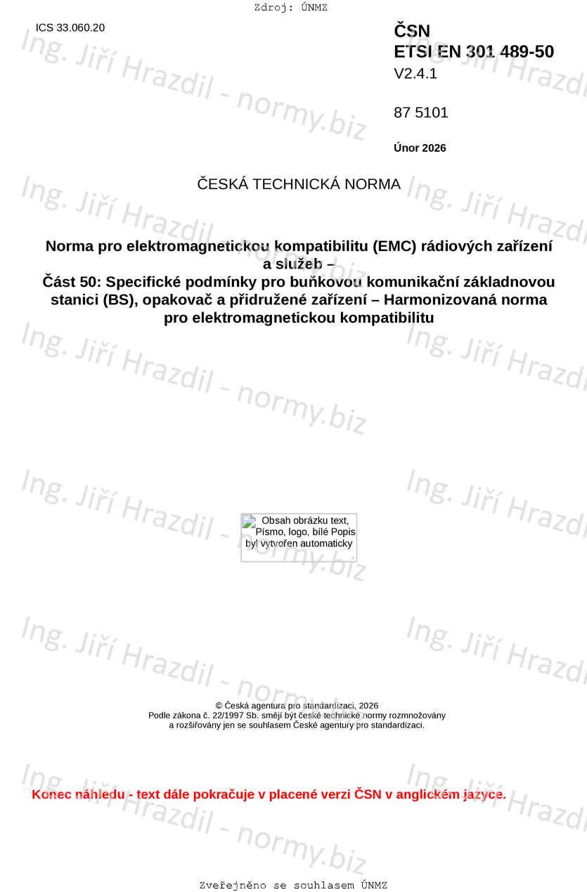| Označení | ČSN ETSI EN 301 489-50 V2.4.1 (875101) |