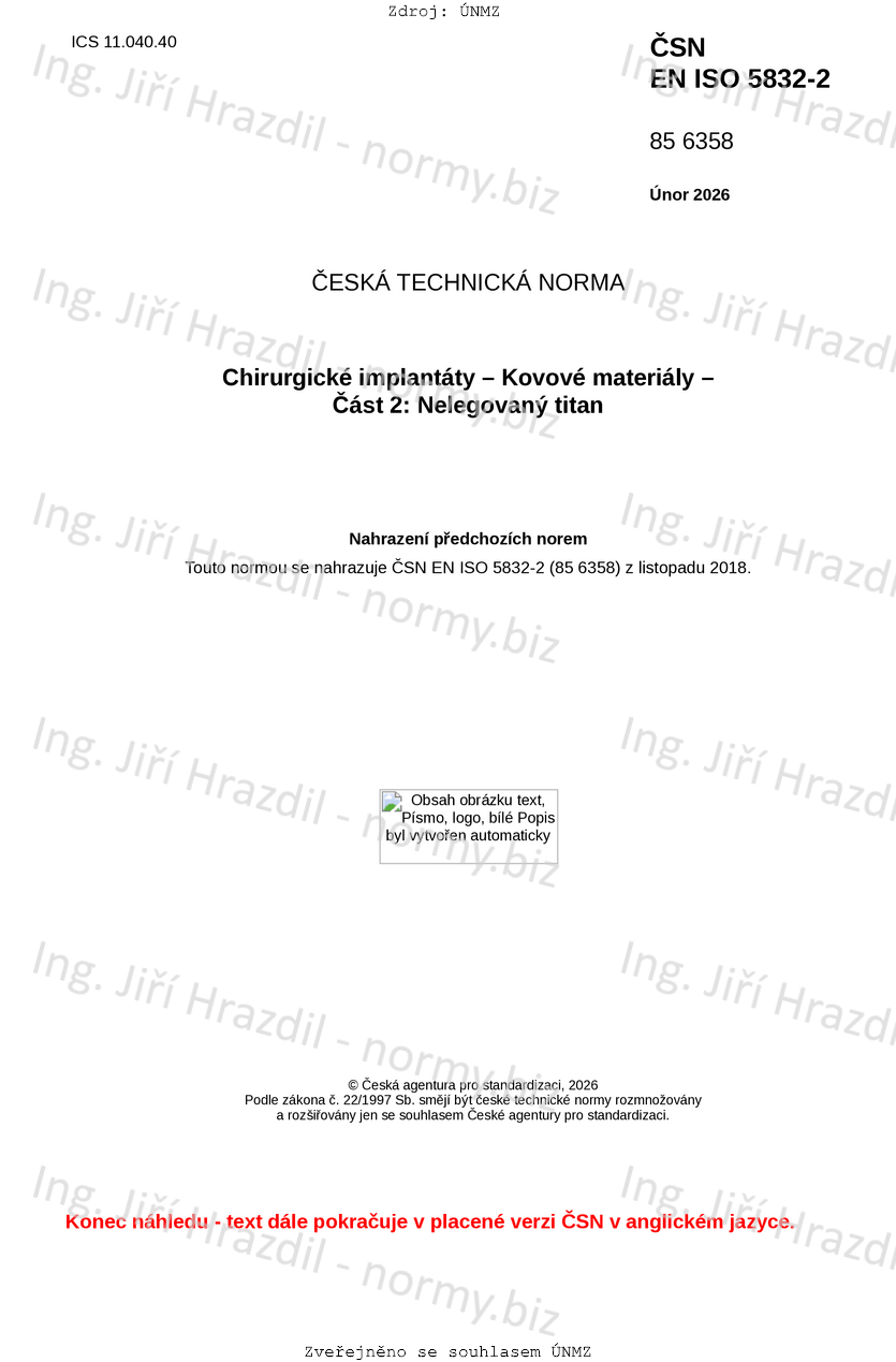 | Označení | ČSN EN ISO 5832-2 (856358) |