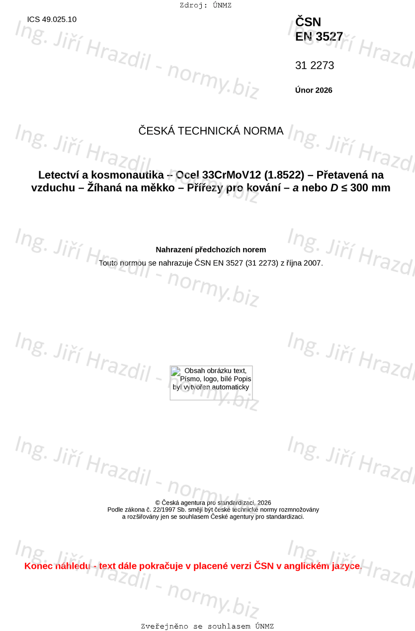 | Tato norma nahradila | ČSN EN 3527 (312273) z října 2007 |