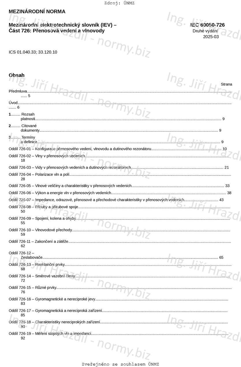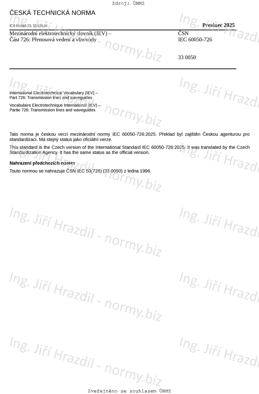 ČSN IEC 60050-726 Mezinárodní elektrotechnický slovník (IEV) - Část 726: Přenosová vedení a vlnovody