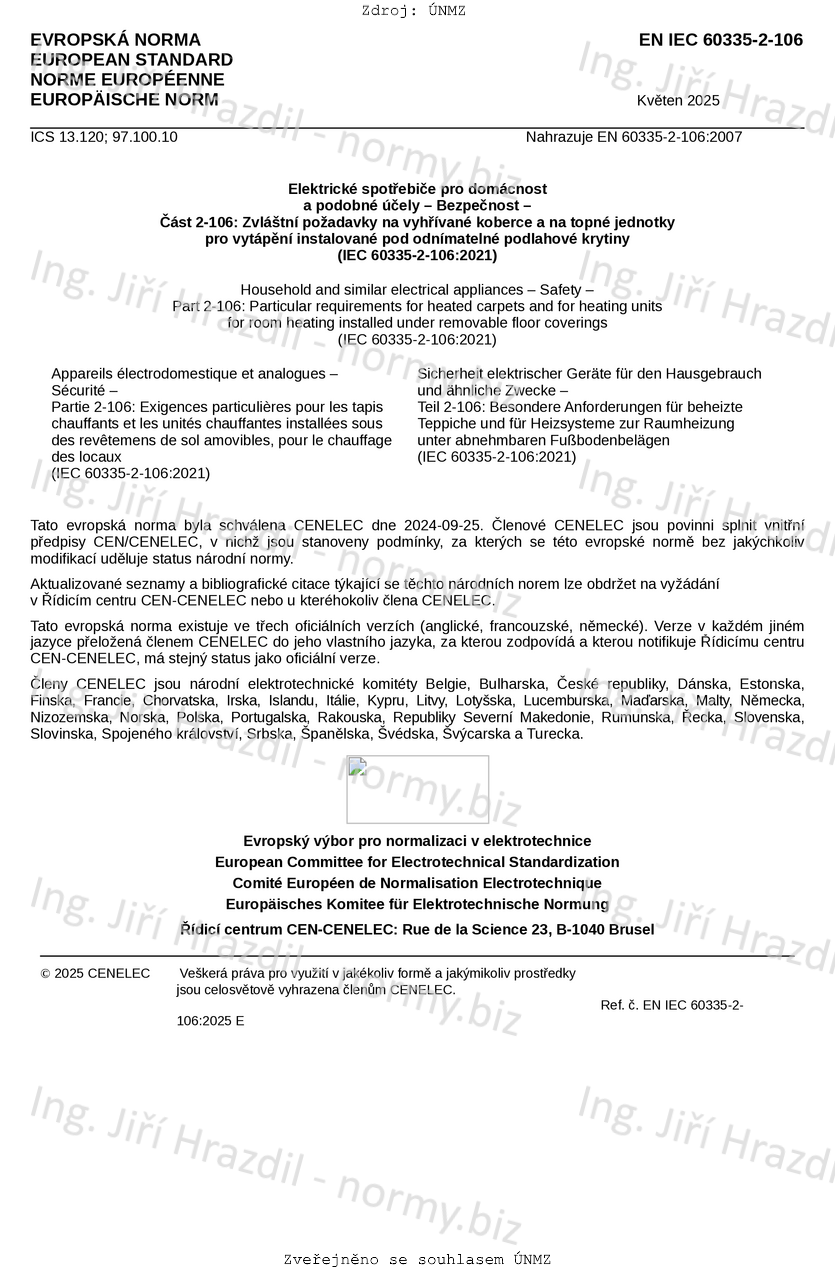 Elektrické spotřebiče pro domácnost a podobné účely - Bezpečnost - Část 2-96: Zvláštní požadavky na tenké ohebné topné články pro vytápění místností