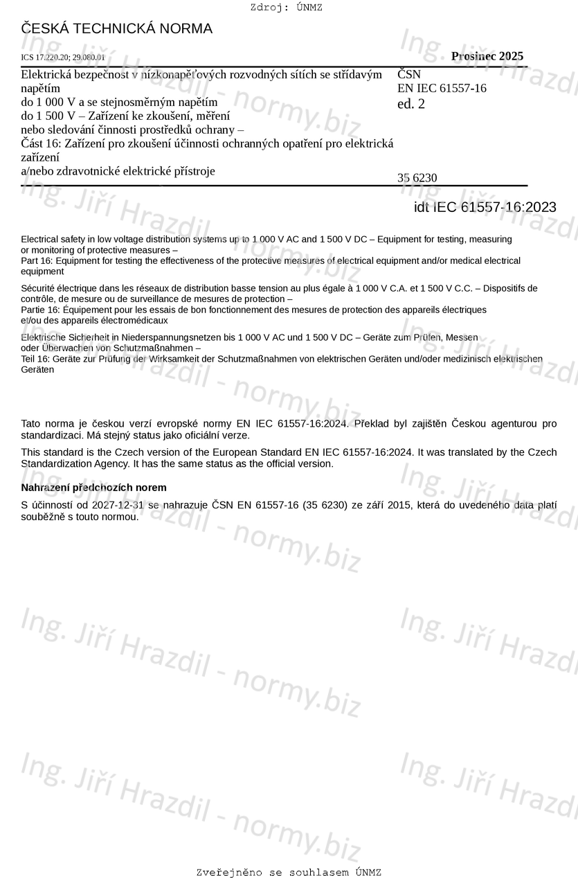 | Označení | ČSN EN IEC 61557-16 ed. 2 (356230) |