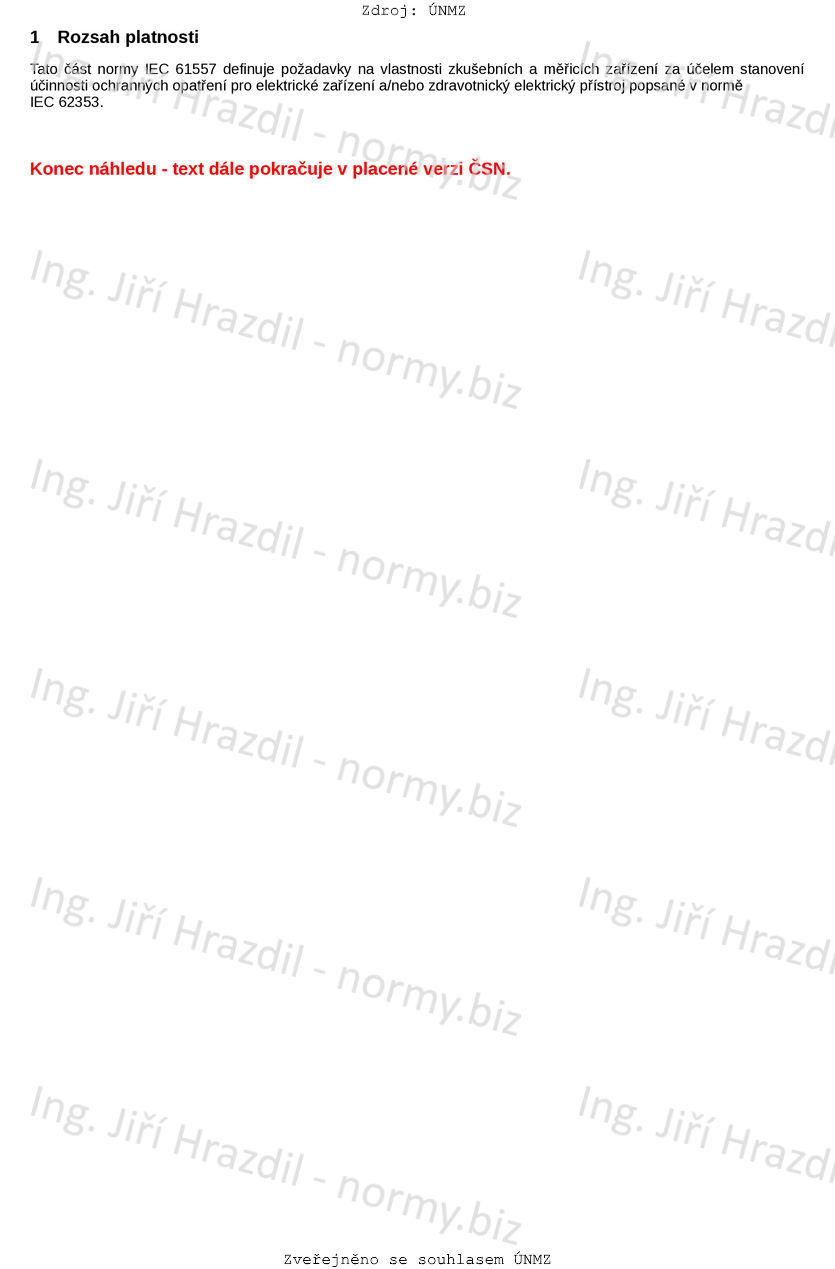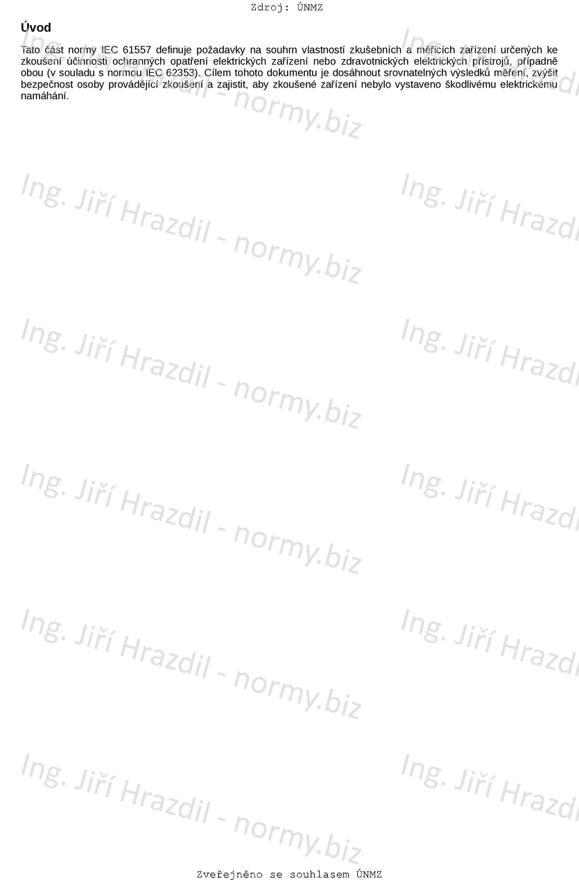 Tato část normy IEC 61557 definuje požadavky na vlastnosti zkušebních a měřicích zařízení za účelem sta-novení účinnosti ochranných opatření pro elektrické zařízení a/nebo zdravotnický elektrický přístroj popsané v normě IEC 62353.