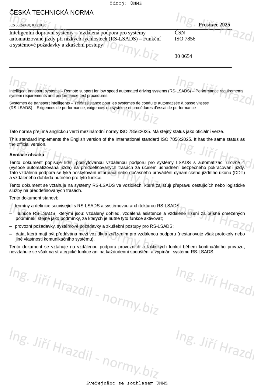 Tento dokument popisuje lidmi poskytovanou vzdálenou podporu pro systémy LSADS s automatizací úrovně 4 (vysoce automatizovaná jízda) na předdefinovaných trasách za účelem usnadnění bezpečného pokračování jízdy. Tato vzdálená podpora se týká poskytování informací nebo dočasného provádění dynamického jízdního úkonu (DDT) a vzdáleného dohledu nutného pro tyto funkce.