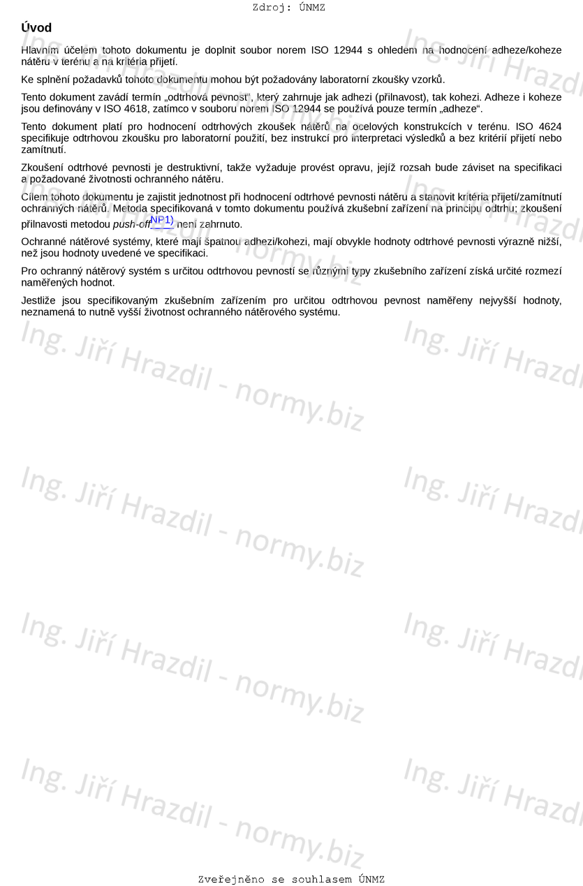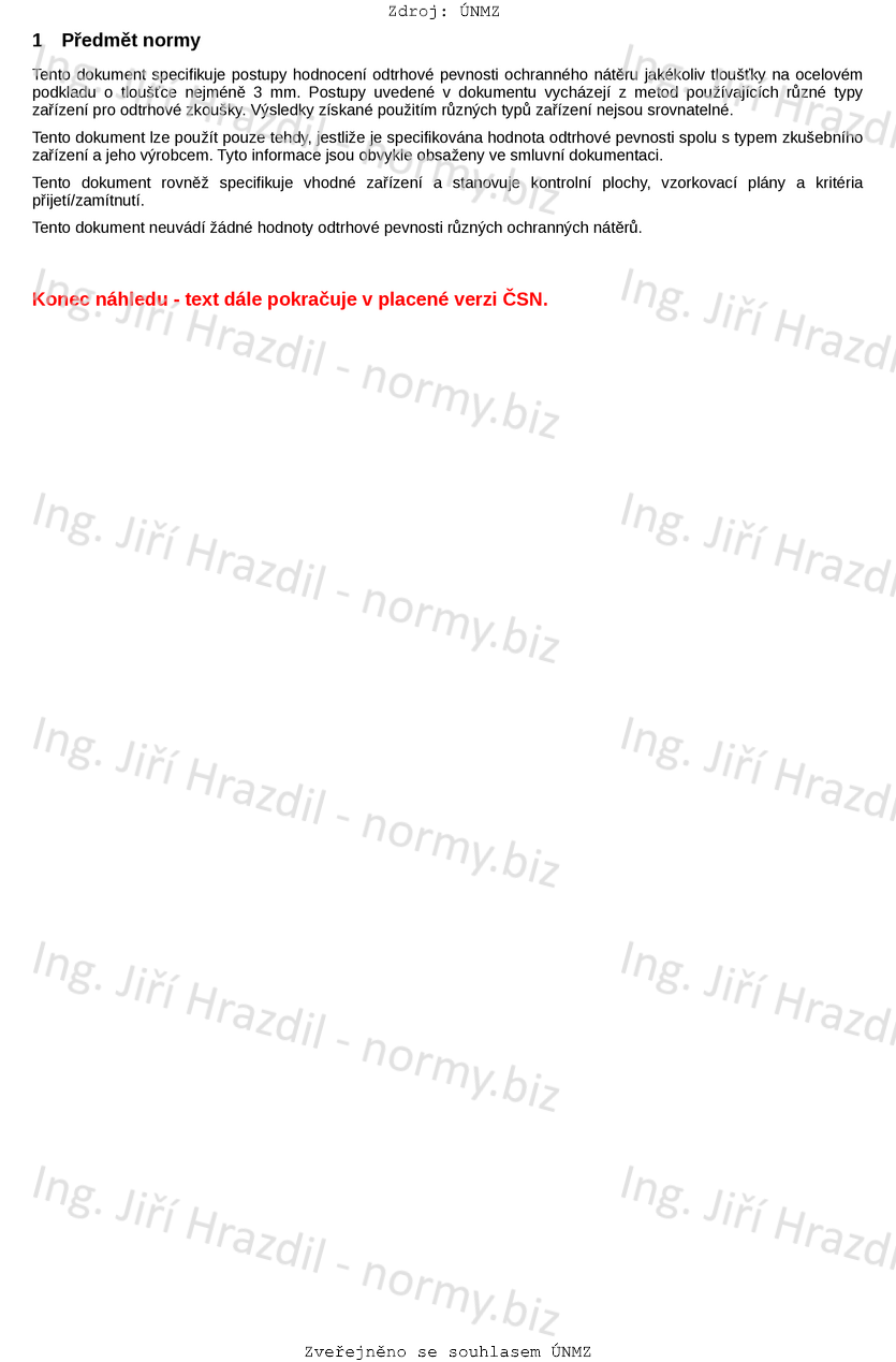 Norma specifikuje postupy hodnocení odtrhové pevnosti ochranného nátěru jakékoliv tloušťky na ocelovém podkladu o tloušťce nejméně 3 mm. Postupy uvedené v normě vycházejí z metod používajících různé typy zařízení pro odtrhové zkoušky. Výsledky získané použitím různých typů zařízení nejsou srovnatelné.