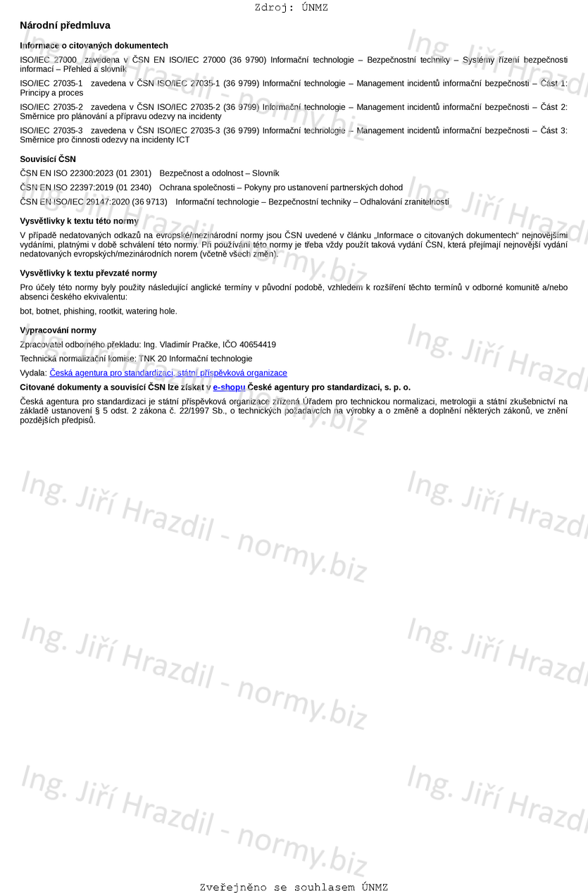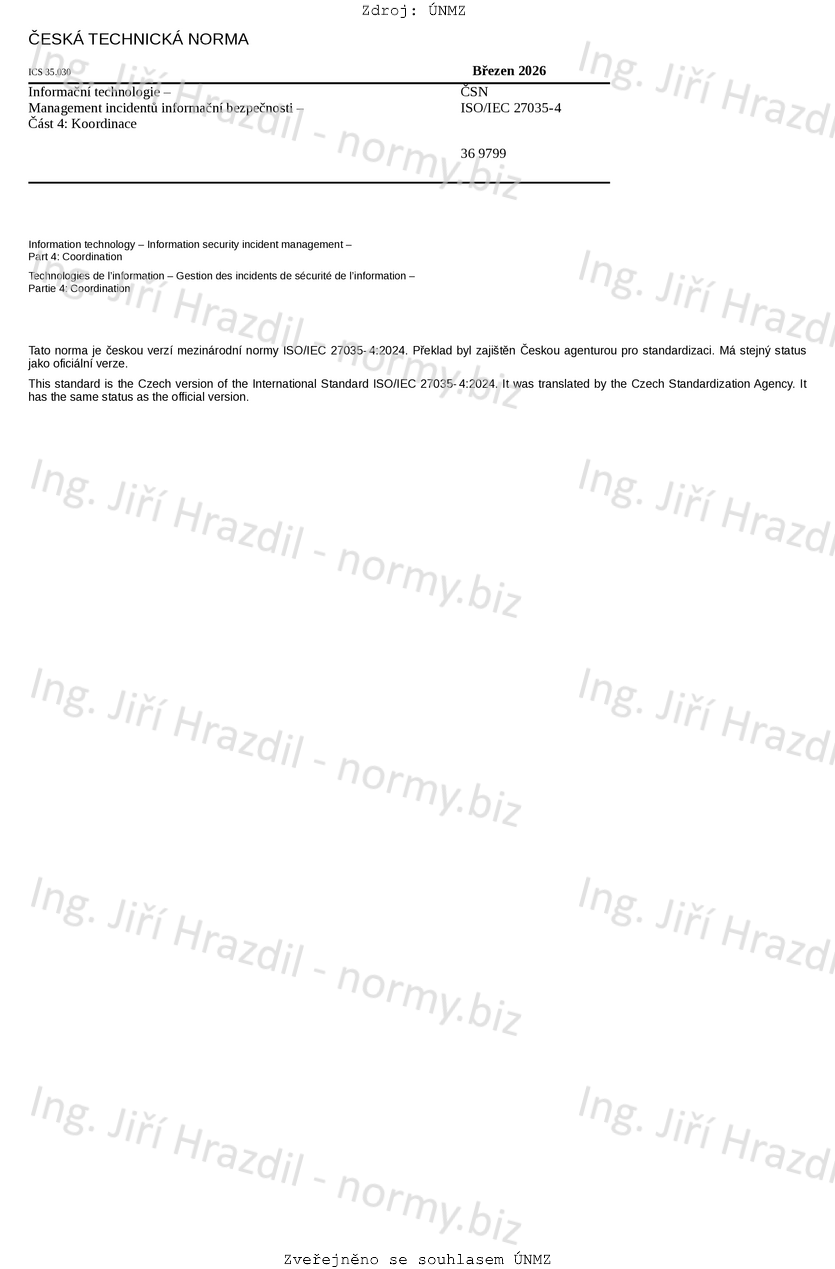 | Označení | ČSN ISO/IEC 27035-4 (369799) |