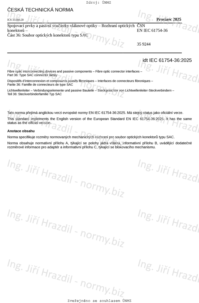 Označení ČSN EN IEC 61754-36 (359244)