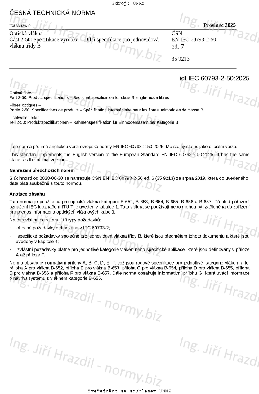 | Označení | ČSN EN IEC 60793-2-50 ed. 7 (359213) |