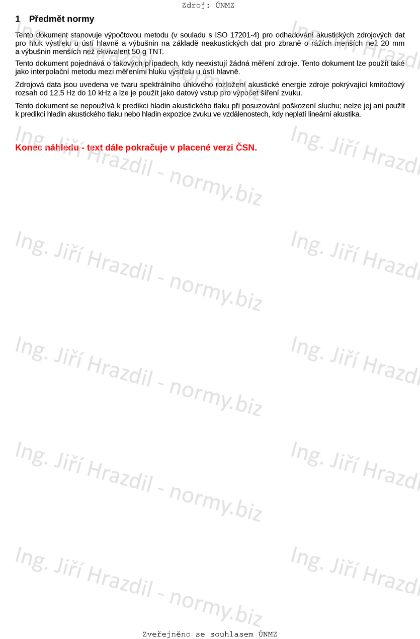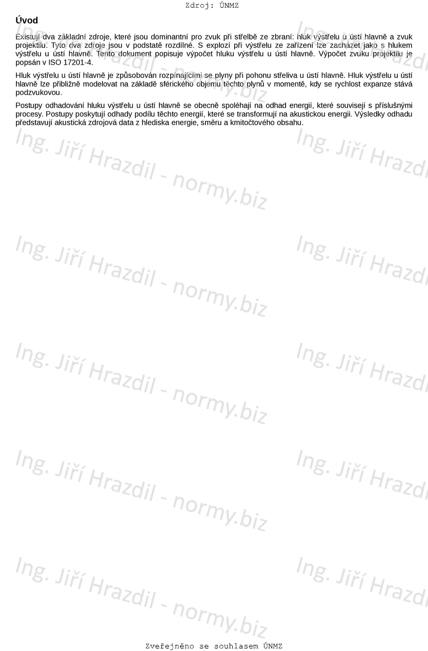 Tento dokument stanovuje výpočtovou metodu (v souladu s ISO 17201-4) pro odhadování akustických zdrojových dat pro hluk výstřelu u ústí hlavně a výbušnin na základě neakustických dat pro zbraně o rážích menších než 20 mm a výbušnin menších než ekvivalent 50 g TNT.