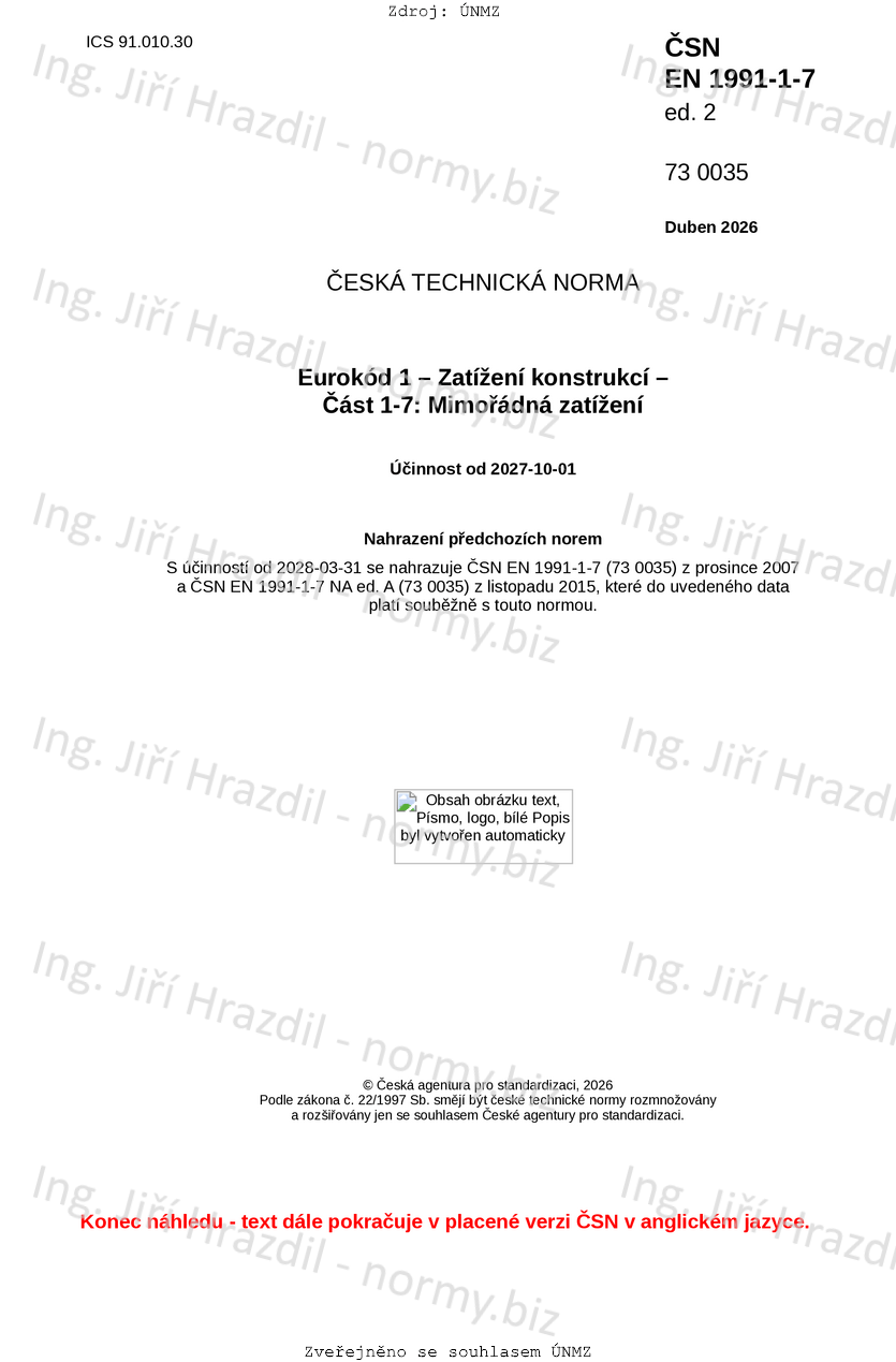 ČSN EN 1991-1-7 NA ed. A (730035) z listopadu 2015 |