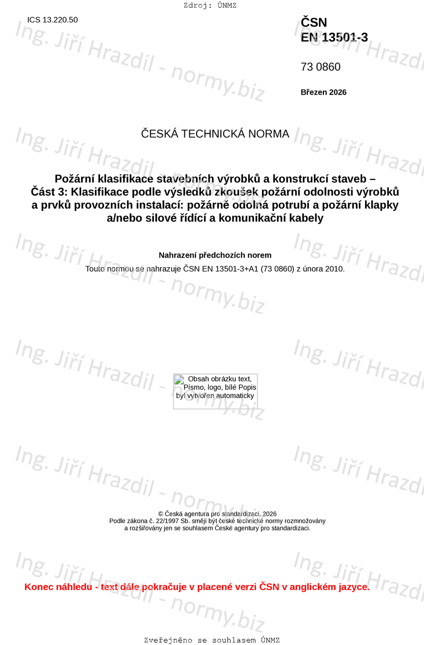 | Tato norma nahradila | ČSN EN 13501-3 +A1 (730860) z února 2010 |