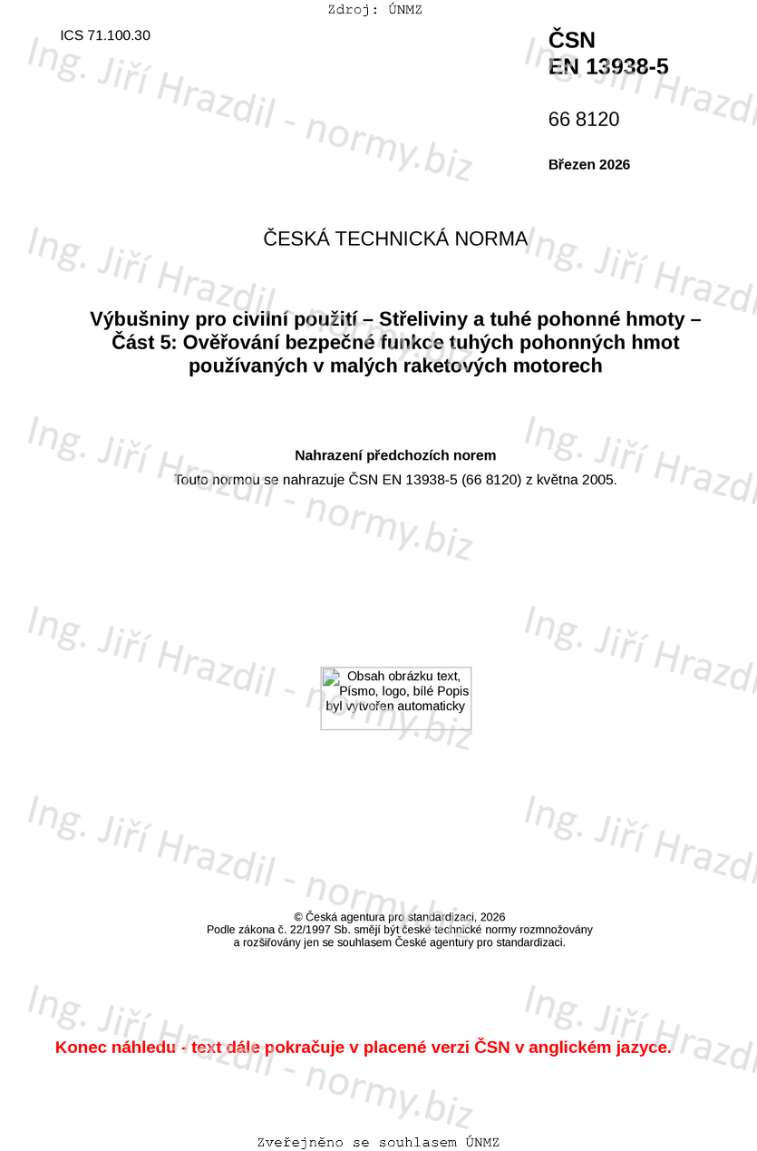 | Tato norma nahradila | ČSN EN 13938-5 (668120) z května 2005 |