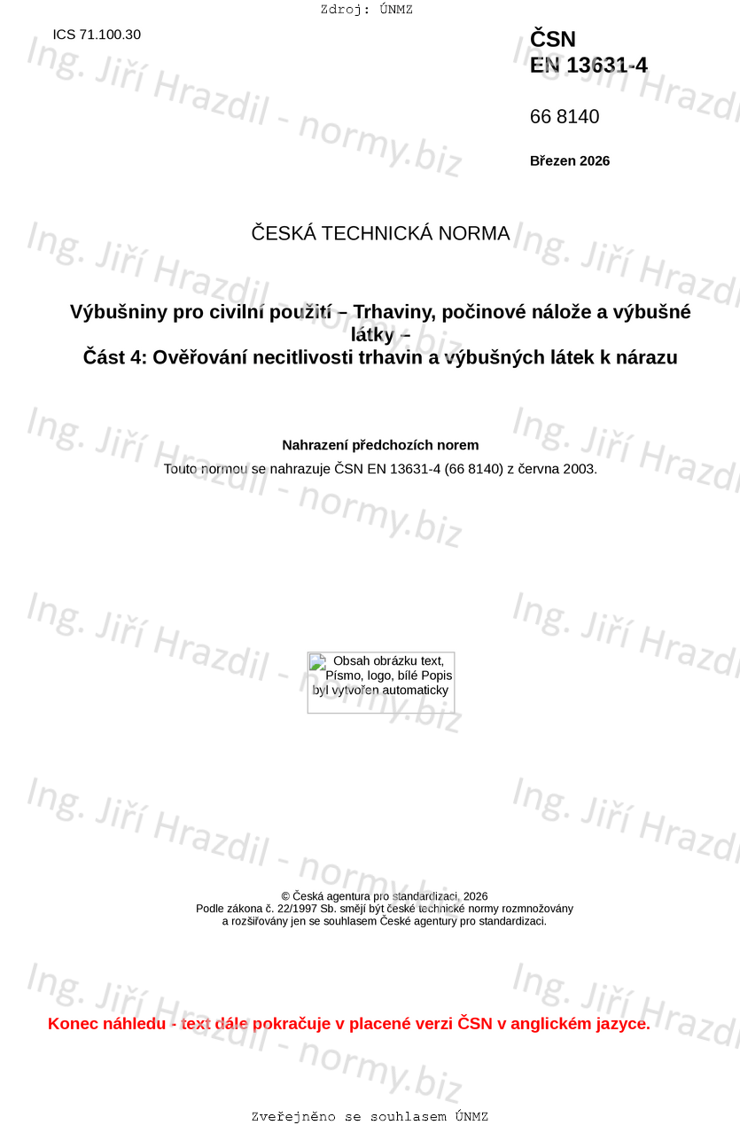 | Tato norma nahradila | ČSN EN 13631-4 (668140) z června 2003 |
