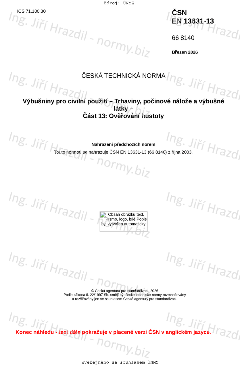 | Tato norma nahradila | ČSN EN 13631-13 (668140) z října 2003 |