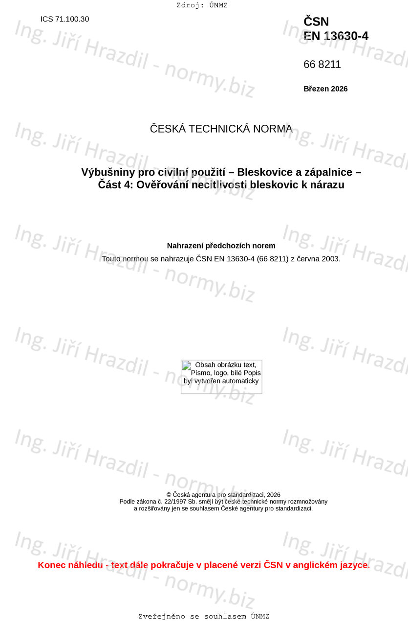 | Tato norma nahradila | ČSN EN 13630-4 (668211) z června 2003 |