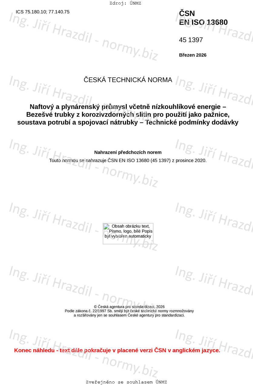 | Tato norma nahradila | ČSN EN ISO 13680 (451397) z prosince 2020 |