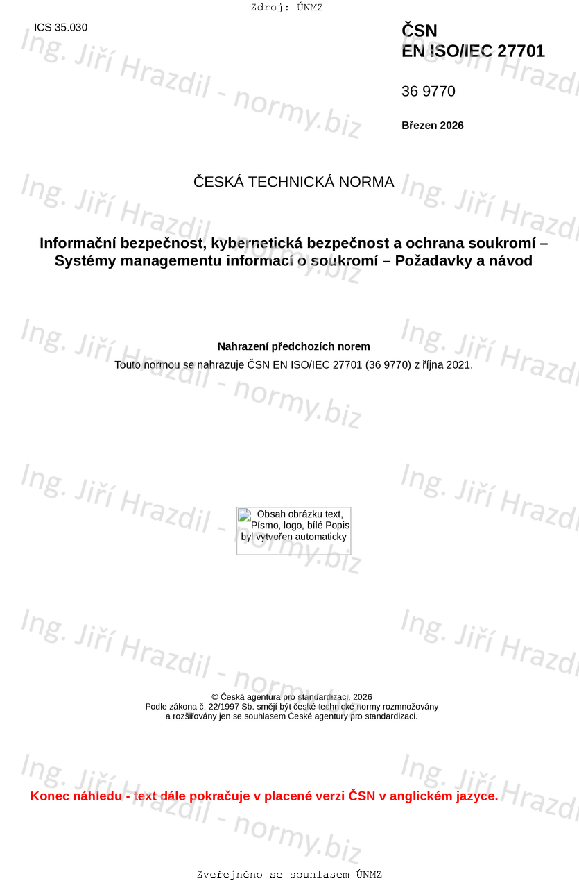 | Označení | ČSN EN ISO/IEC 27701 (369770) |