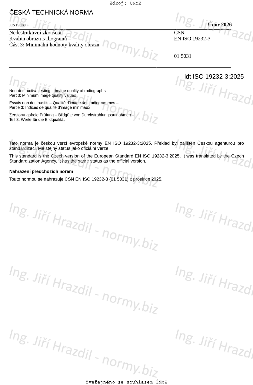 | Tato norma nahradila | ČSN EN ISO 19232-3 (015031) z prosince 2025 |