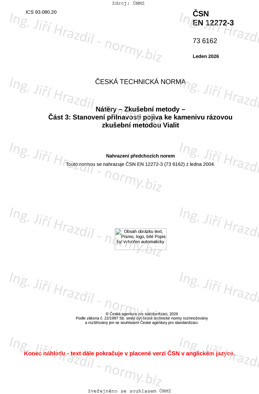 | Tato norma nahradila | ČSN EN 12272-3 (736162) z ledna 2004 |