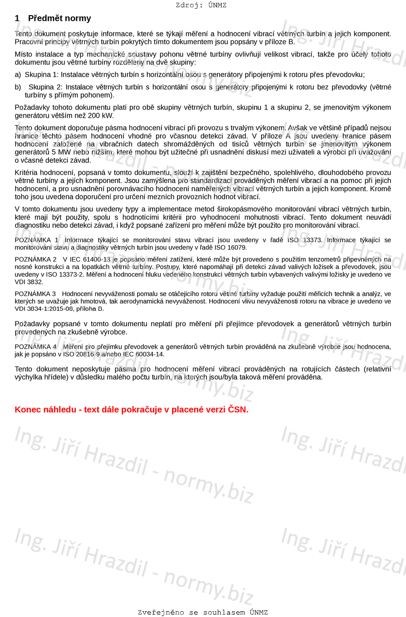 Tento dokument poskytuje informace, které se týkají měření a hodnocení vibrací větrných turbín a jejich komponent. Pracovní principy větrných turbín pokrytých tímto dokumentem jsou popsány v příloze B.