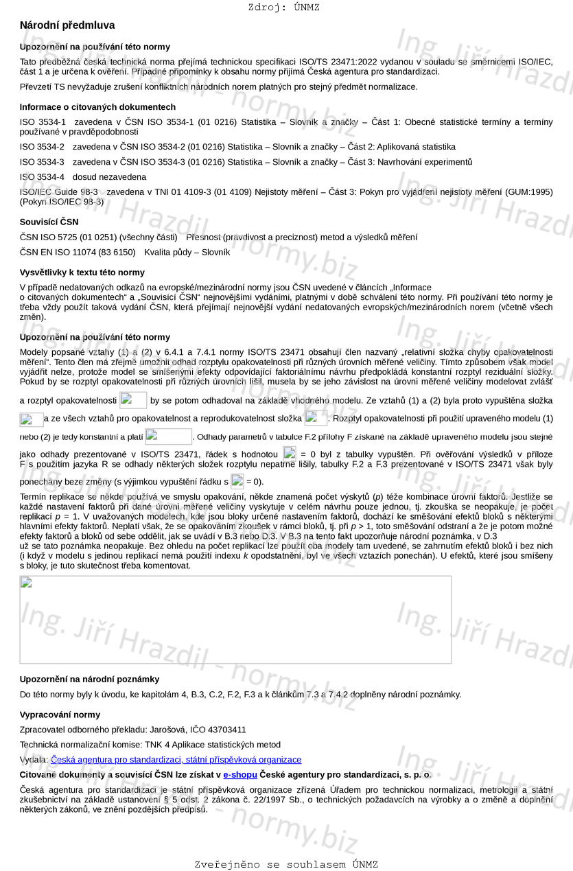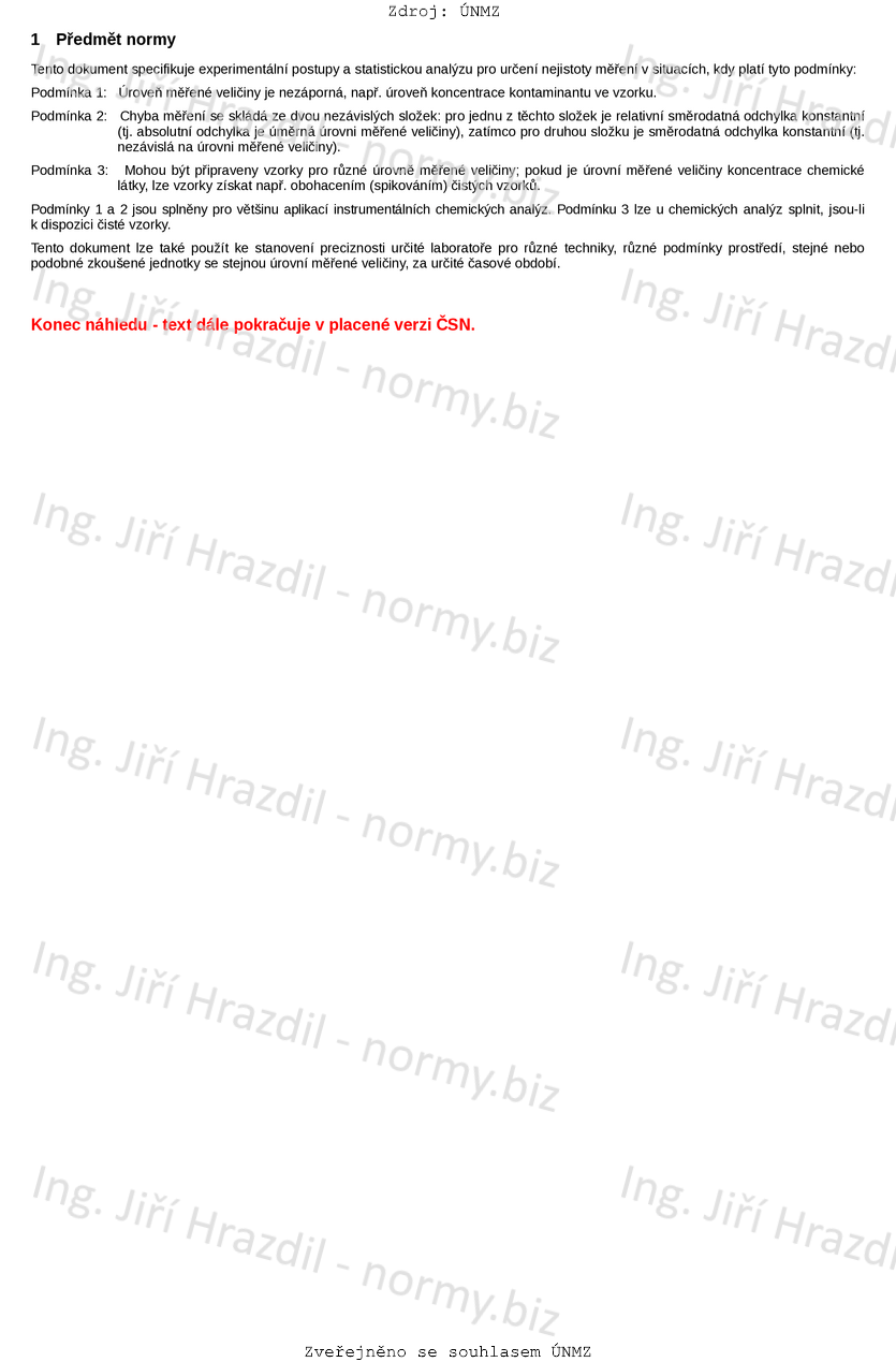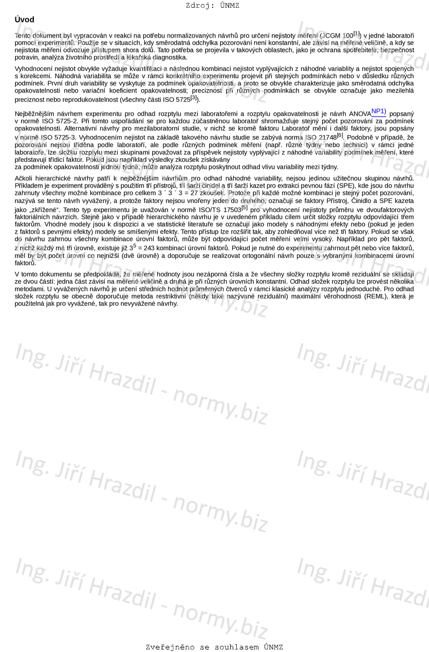 Tento dokument specifikuje experimentální postupy a statistickou analýzu pro určení nejistoty měření v situacích, kdy platí tyto podmínky: