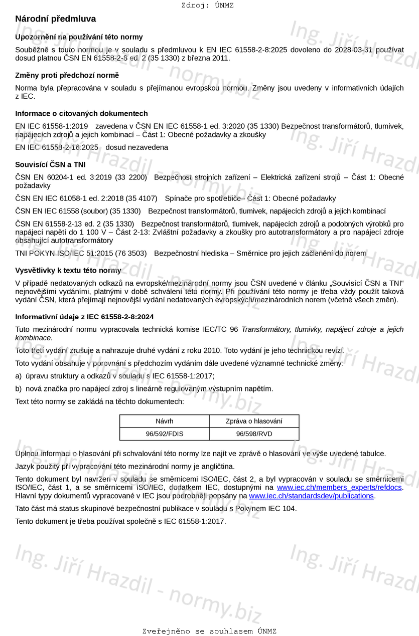 Označení ČSN EN IEC 61558-2-8 ed. 3 (351330)