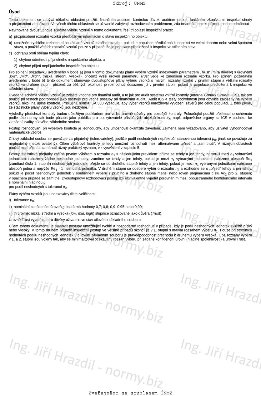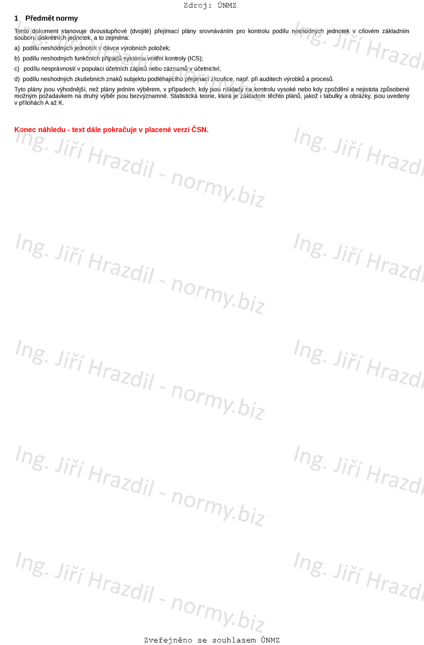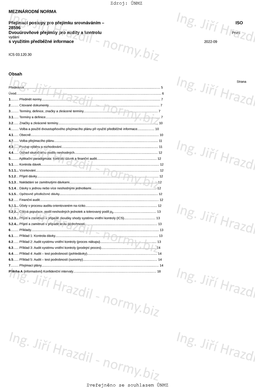 Přejímací postupy pro přejímku srovnáváním - Dvouúrovňové přejímky pro audity a kontrolu s využitím předběžné informace