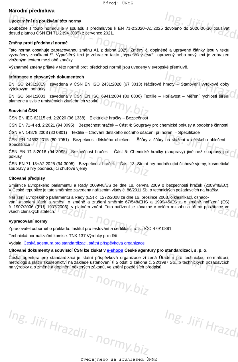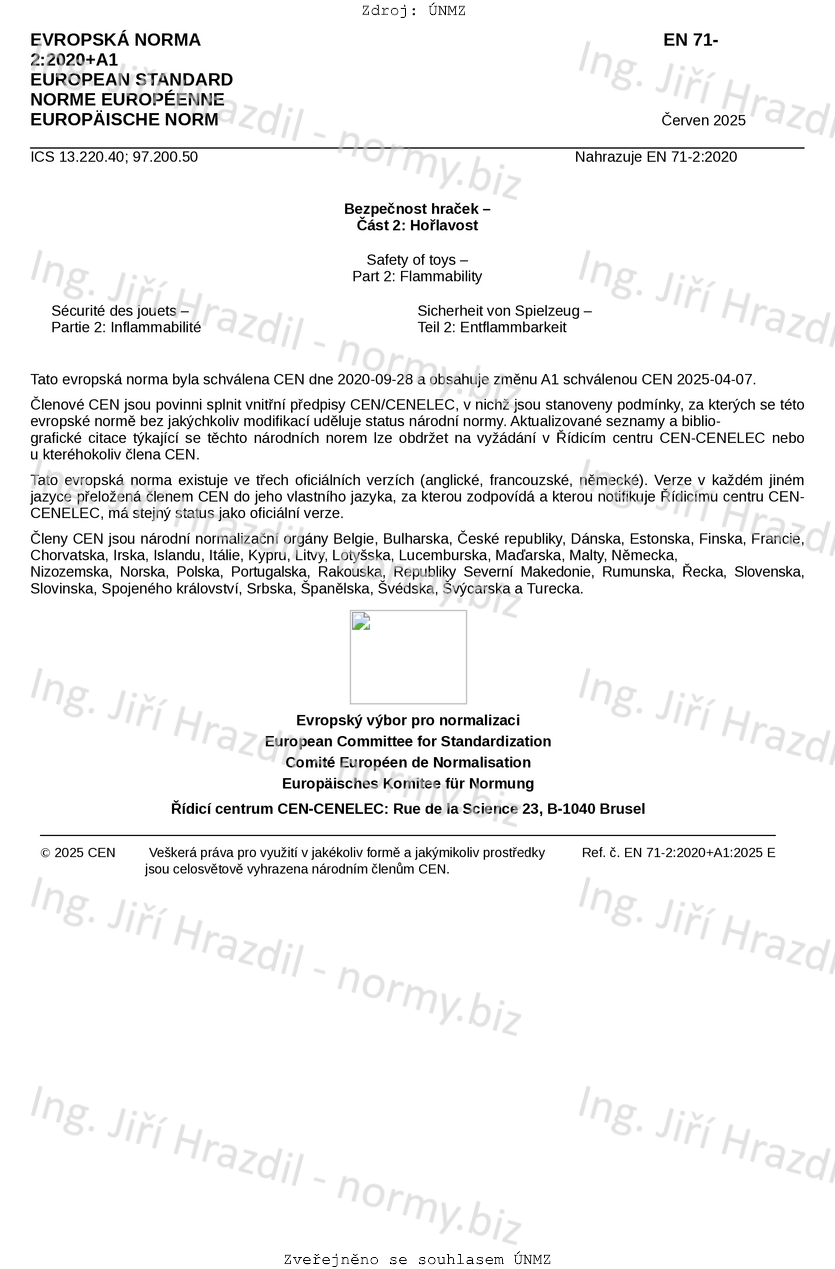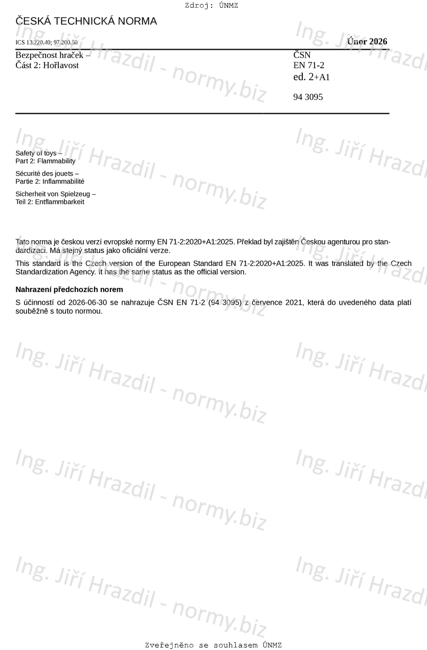 | Označení | ČSN EN 71-2 ed. 2 +A1 (943095) |