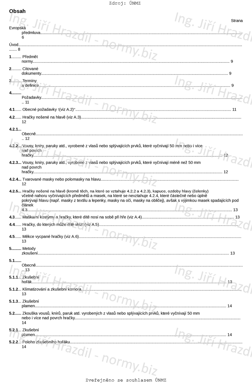 Tento dokument obsahuje obecné požadavky týkající se všech hraček a určité požadavky a metody zkoušení, které se týkají následujících hraček, které jsou považovány za nejnebezpečnější:
