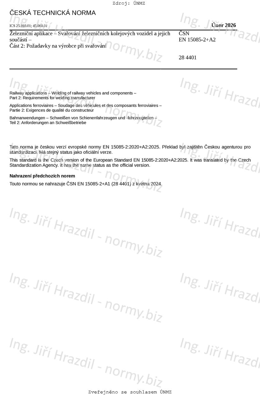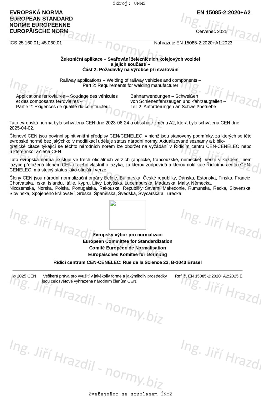 | Označení | ČSN EN 15085-2 +A2 (284401) |