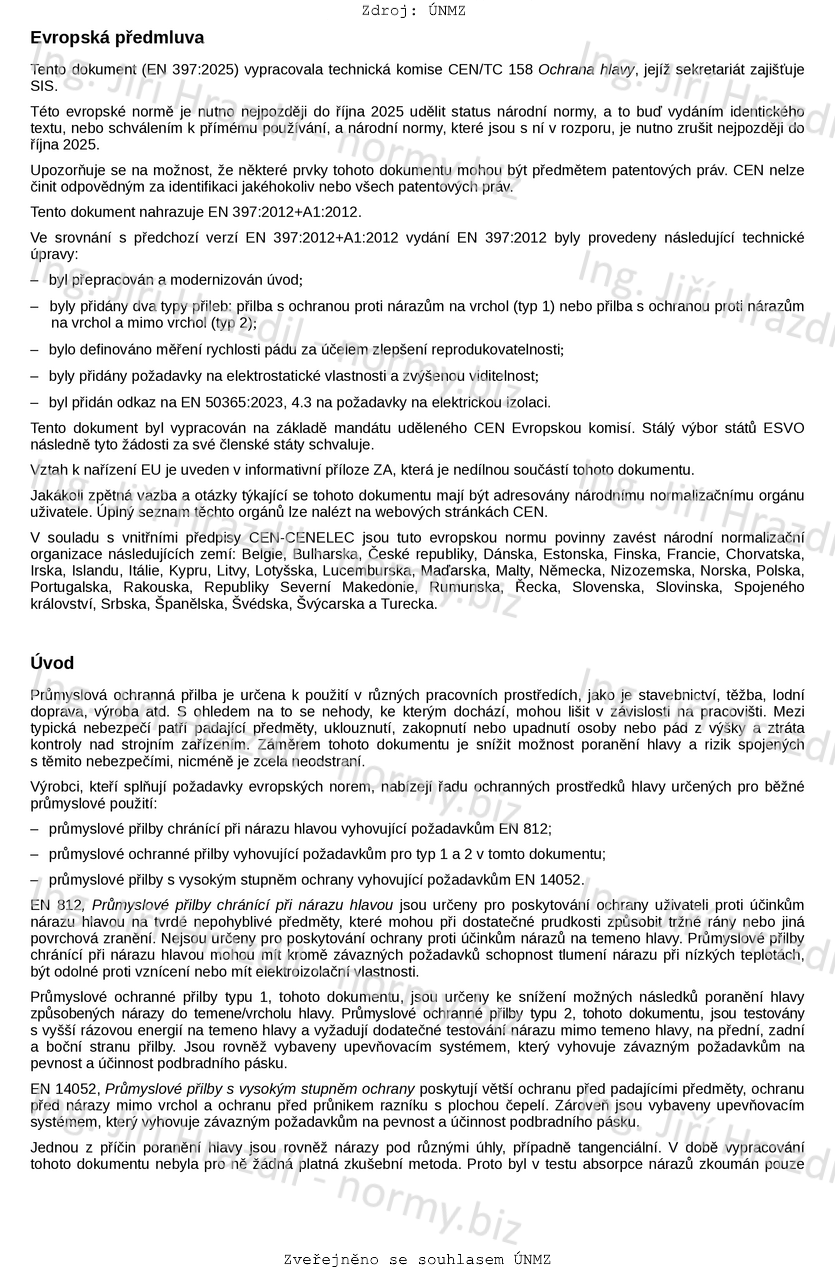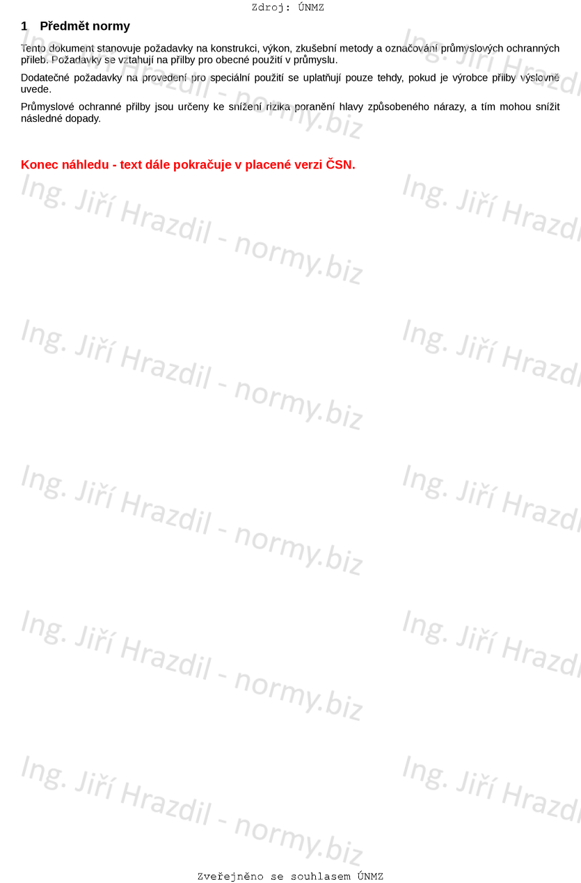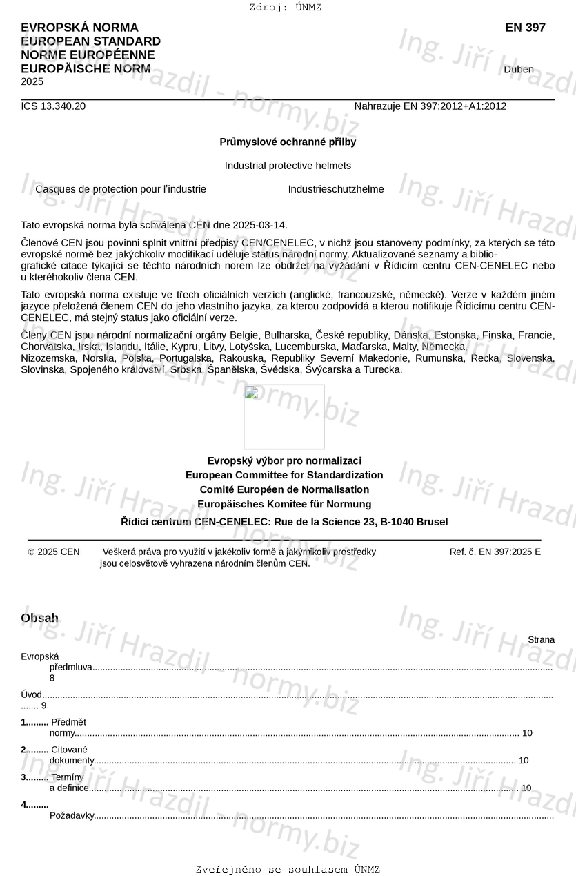 Tento dokument stanovuje požadavky na konstrukci, výkon, zkušební metody a označování průmyslových ochranných přileb. Požadavky se vztahují na přilby pro obecné použití v průmyslu.