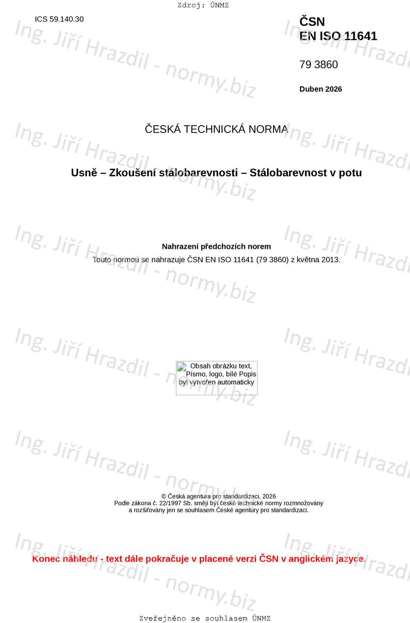 | Tato norma nahradila | ČSN EN ISO 11641 (793860) z května 2013 |