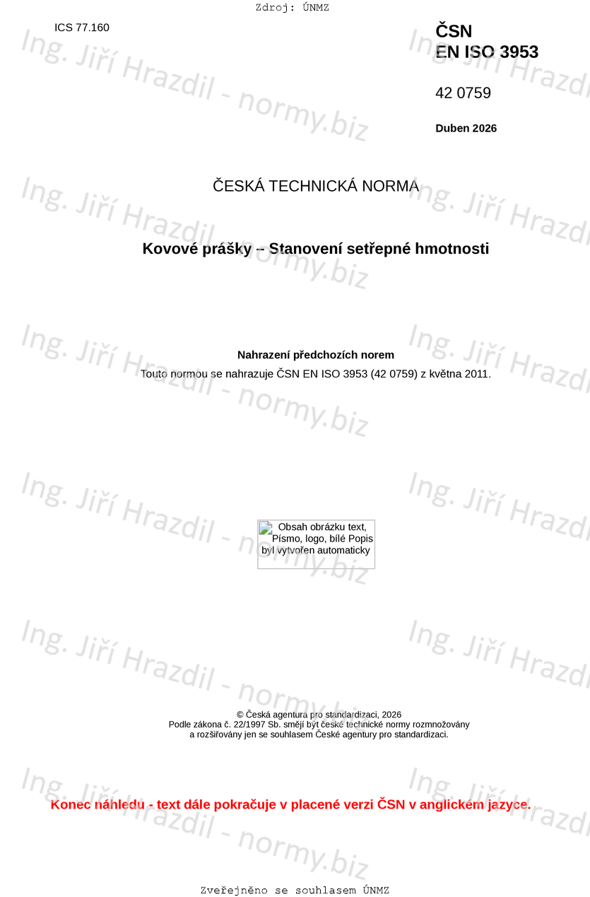 | Tato norma nahradila | ČSN EN ISO 3953 (420759) z května 2011 |