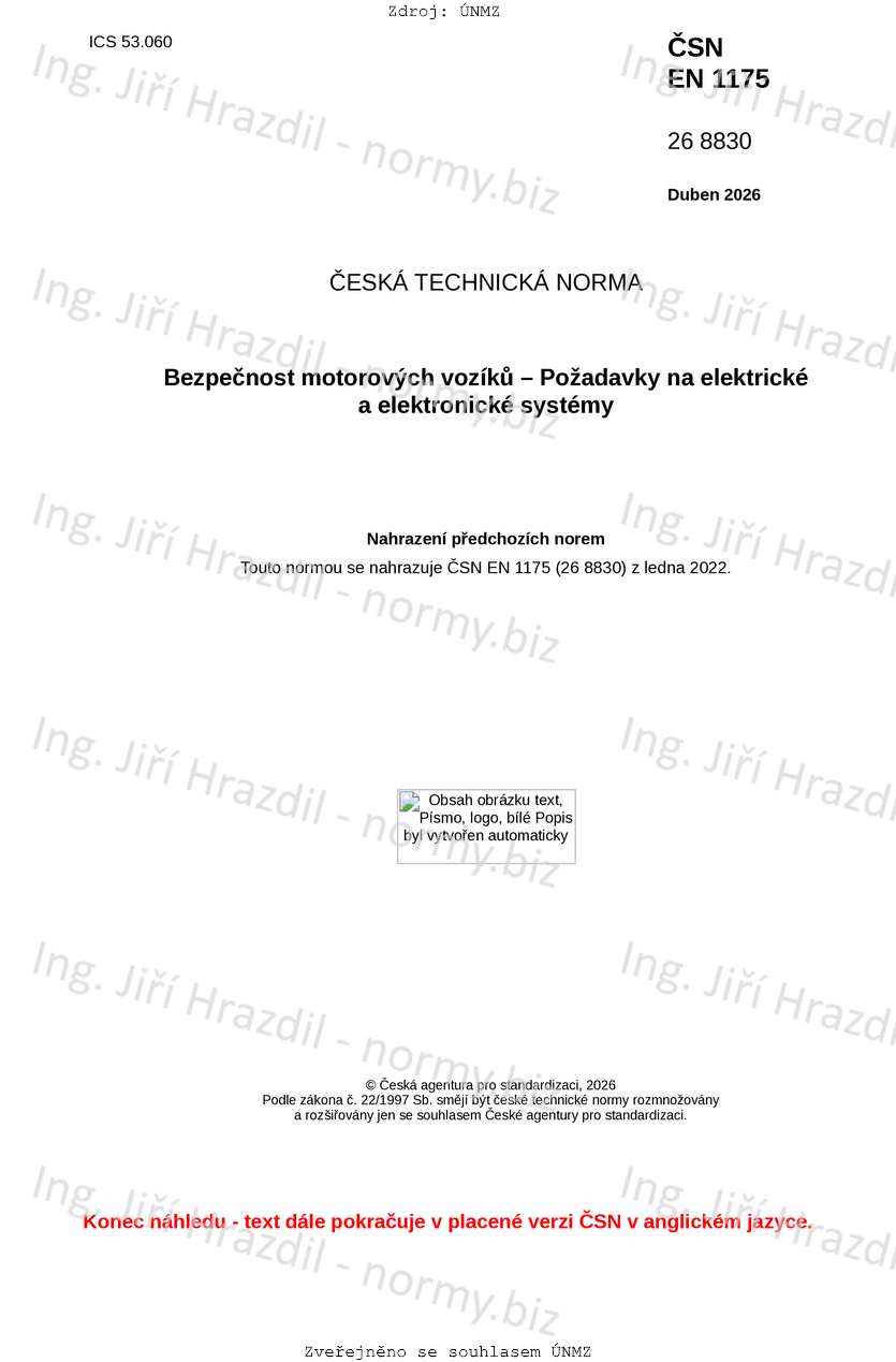 | Tato norma nahradila | ČSN EN 1175 (268830) z ledna 2022 |