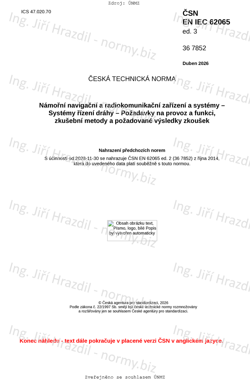 | Označení | ČSN EN IEC 62065 ed. 3 (367852) |